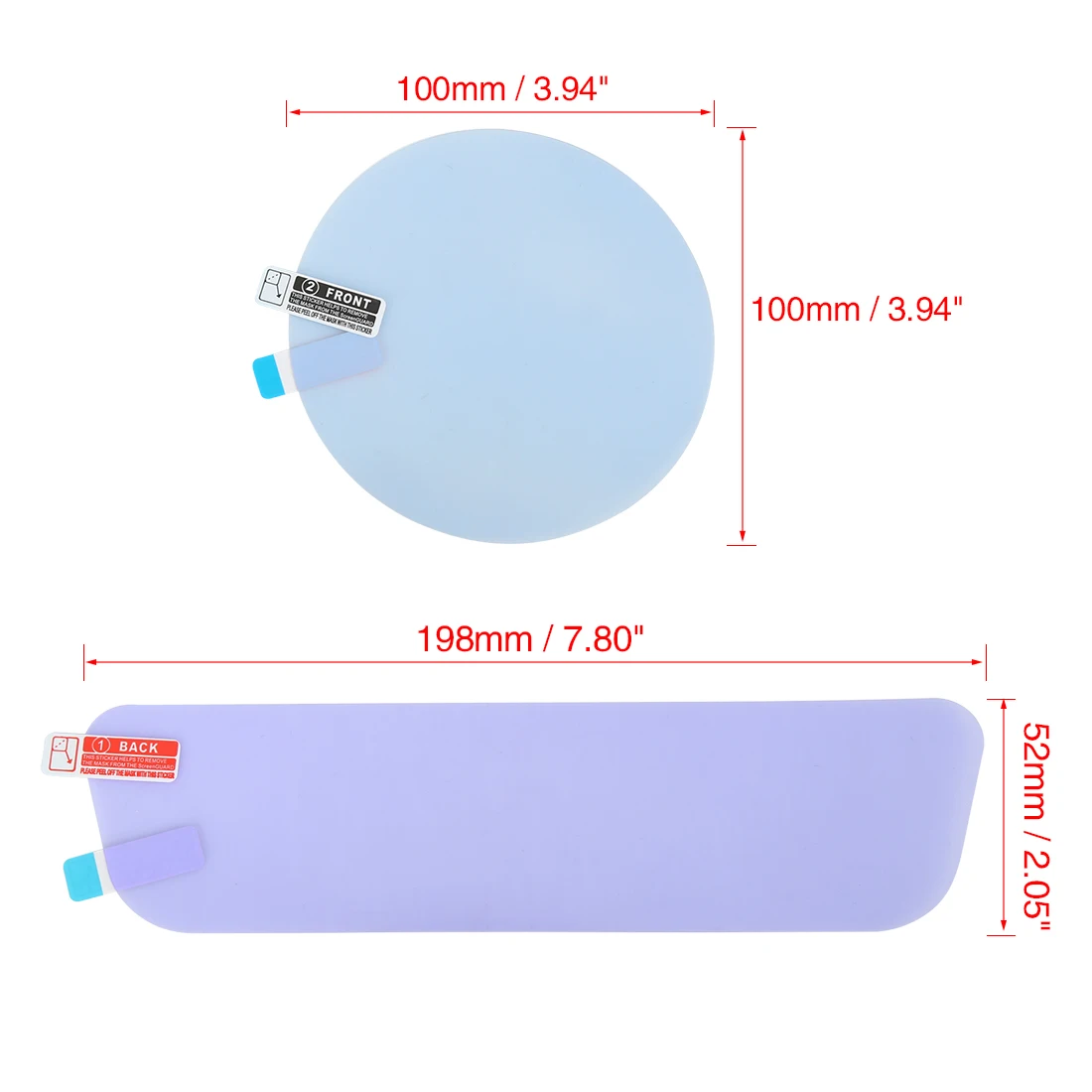 Круглая пленка на зеркало заднего вида размер: 100x100 мм/3,94 "x 3,94" Размер пленки для бокового окна автомобиля: 200x175 мм/7,87 "x 6,89" (Д * Ш) Автомобильная внутренняя пленка на зеркало заднего вида размер: 198x52 мм/7,80 "x 2,05" (Д * Ш) Материал: ПЭТ + нано-Материал s Цвет: синий, фиолетовый, прозрачный Форма: круглая, прямоугольная Место установки: боковое, внутреннее зеркало заднего вида и боковое окноКомплект B