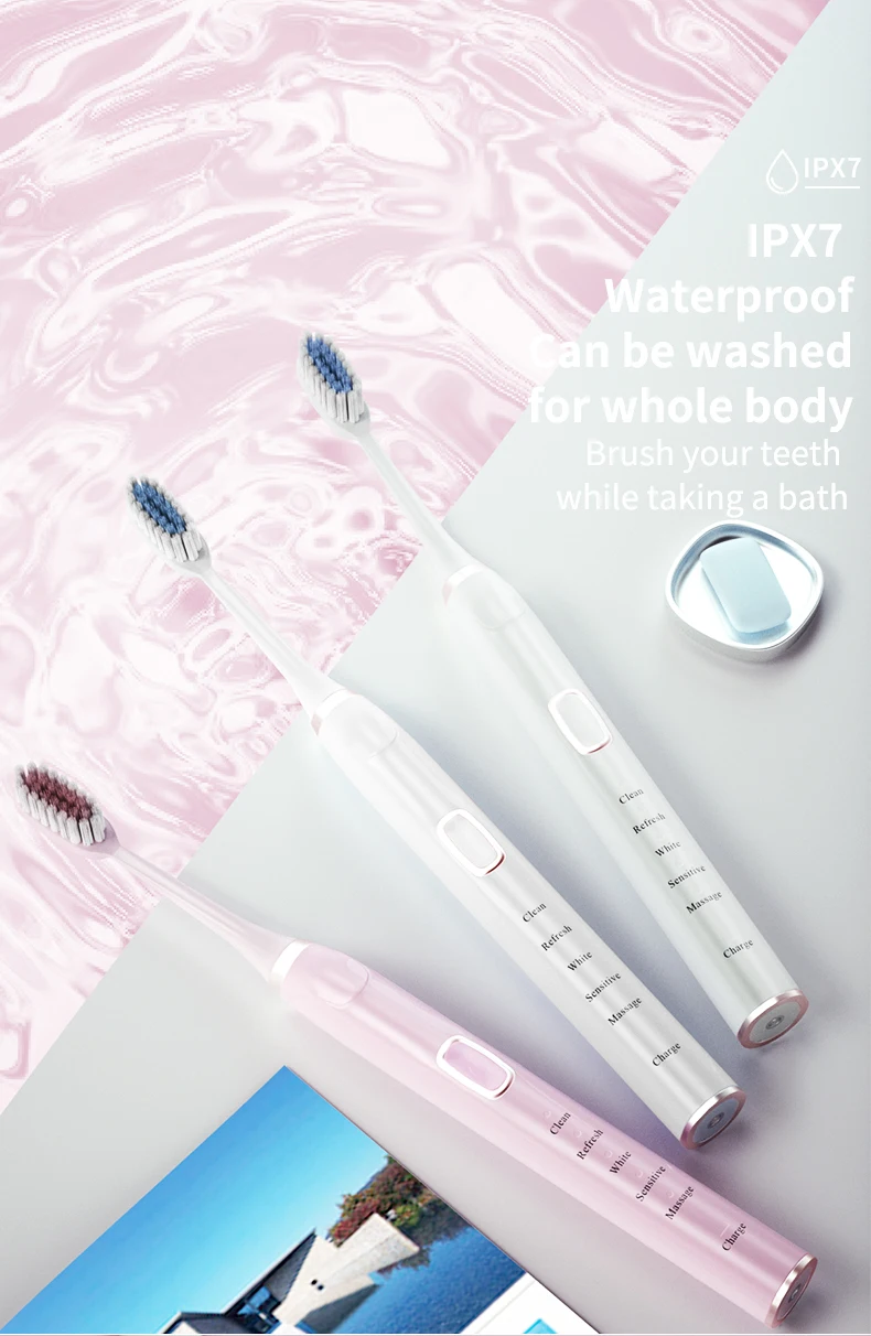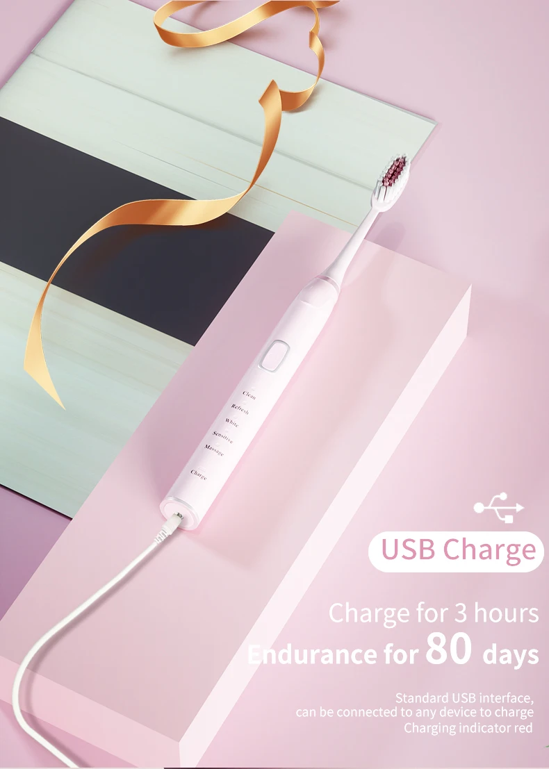 Электрическая зубная щетка-1 шт. 5 х головок кистей 1 X Руководство пользователя 1 х USB кабель для зарядки