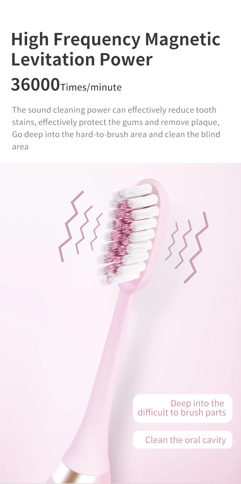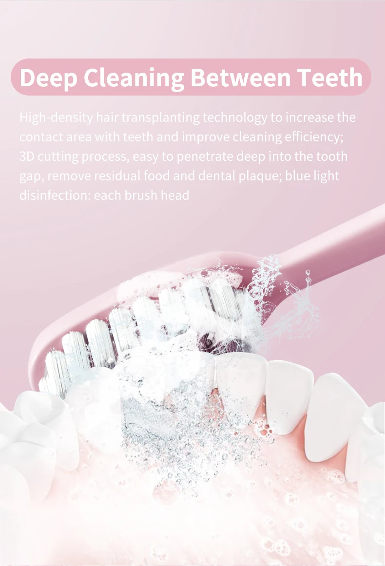 Сила очистки звука может эффективно уменьшить от зубных пятен, эффективно защитить десны и удалить зубной налет, глубоко погрузиться в трудночистящую область и очистить слепую область