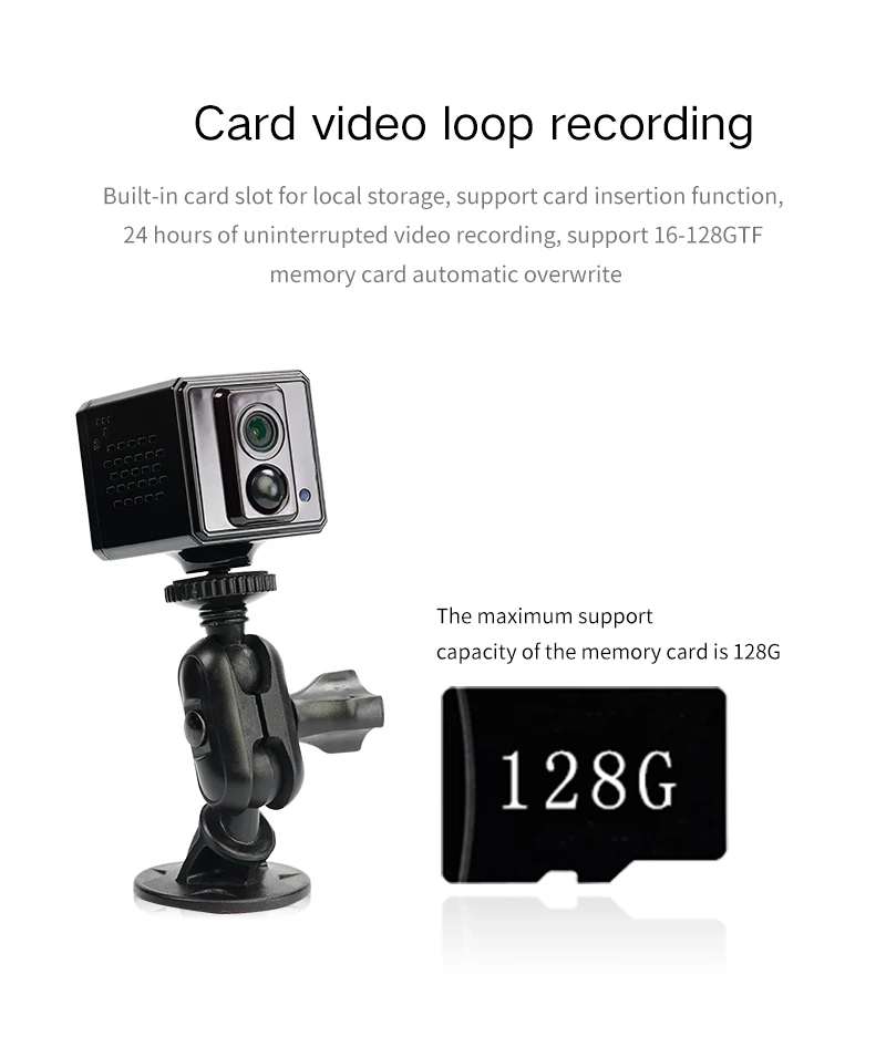 ● Встроенный слот для карт для локального хранения, поддержка функции вставки карт, ● 24 часа непрерывной записи видео, ● Поддержка 16-128GTF карты памяти Автоматическая перезапись