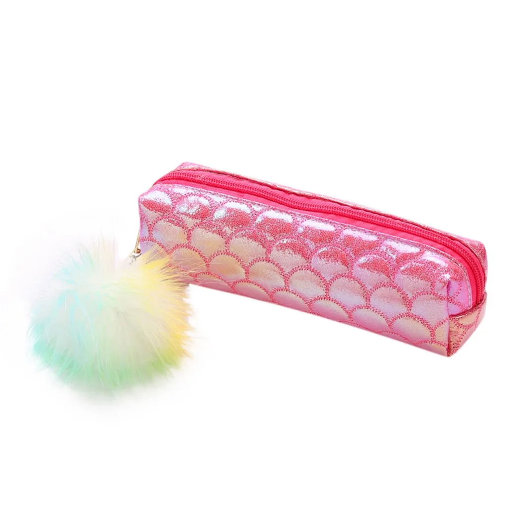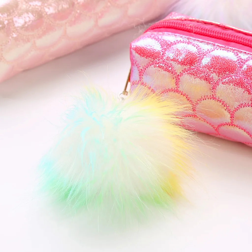 Градиентные чешуи с блестками, пенал с помпоном для волос, украшение на молнии, чехол для карандашей, коробка для канцелярских принадлежностей, чехол для путешествий, сумка для макияжа, прочная