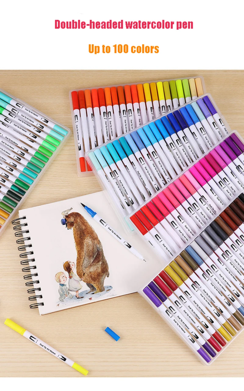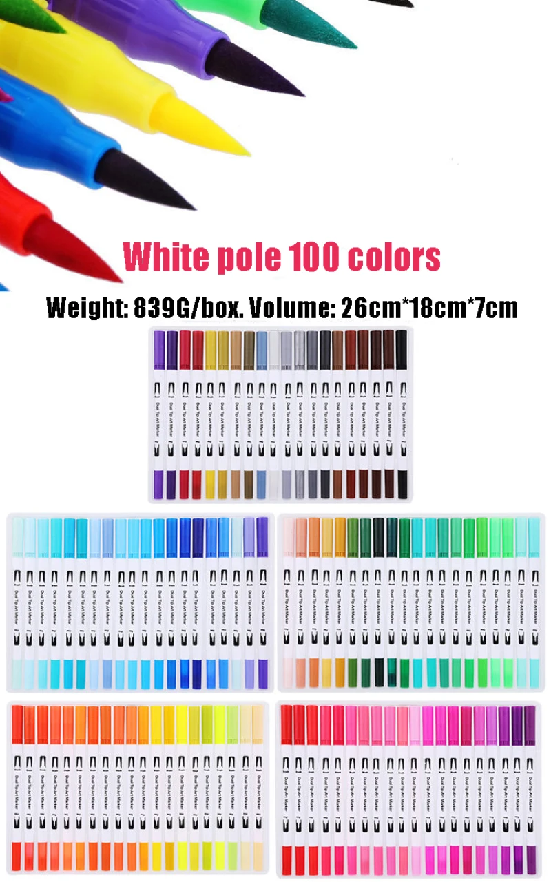 12/24/36/48/72/100 Цвета двойной кисти для рисования ручка концом и кончик кисти акварельных ручек для рисования канцелярские принадлежности