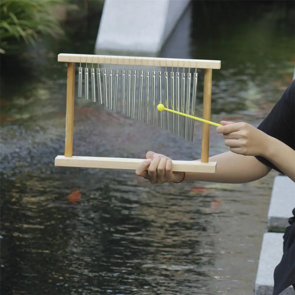 Изготовлен из качественной алюминиевой трубки с чистым и приятным звуком. Деревянная Рама изготовлена из экологически чистого материала, который легко носить с собой.