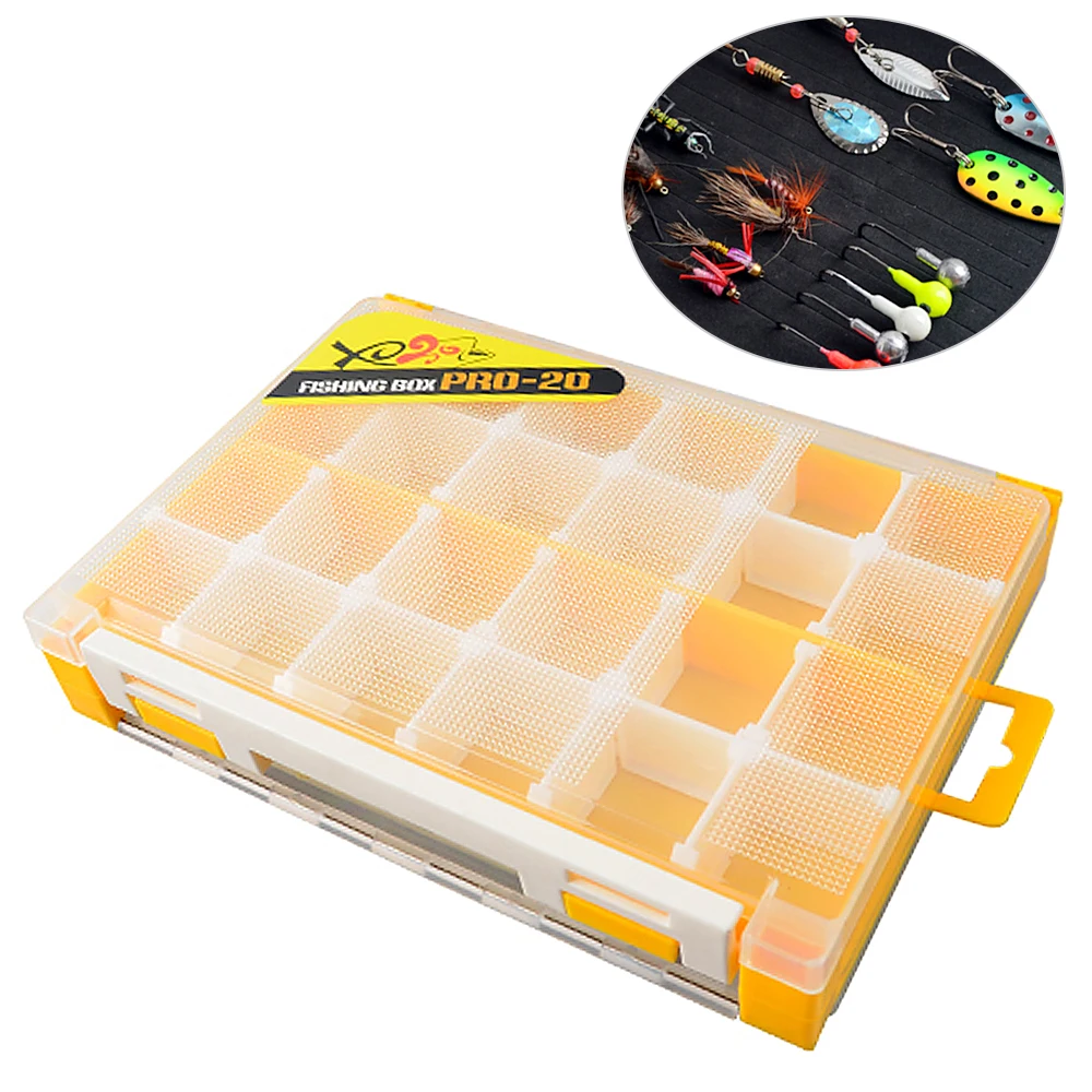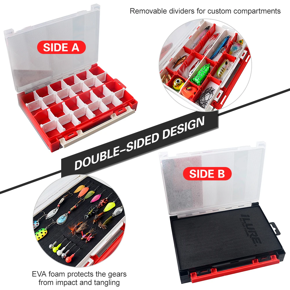 Двухсторонняя рыболовная коробка помогает держать ваши рыболовные аксессуары в порядке.