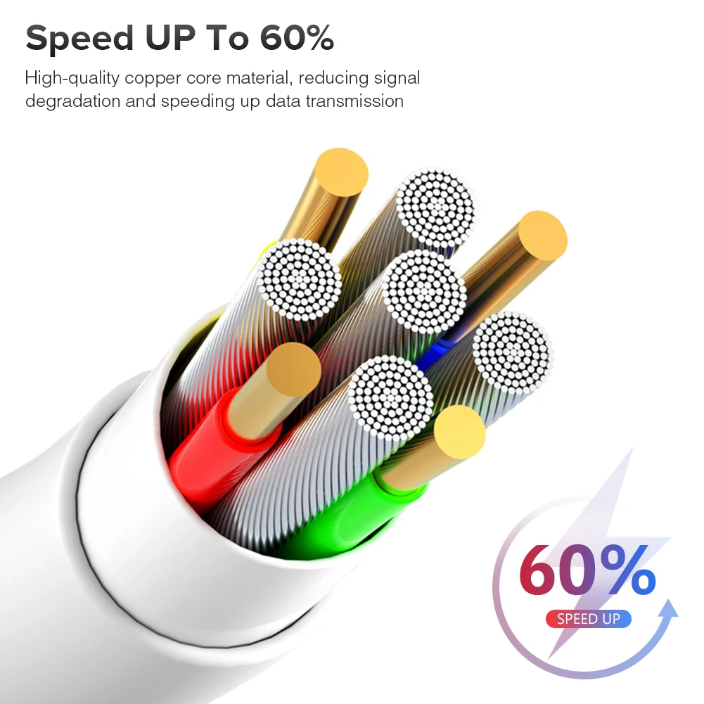 Прочный и прочный, высококачественный медный кабель обернут экологически чистой ПВХ-курткой, которая более мягкая и прочная, не легко запутывается.