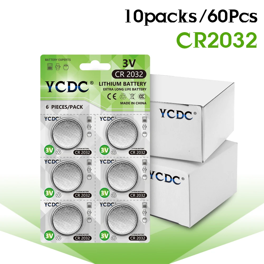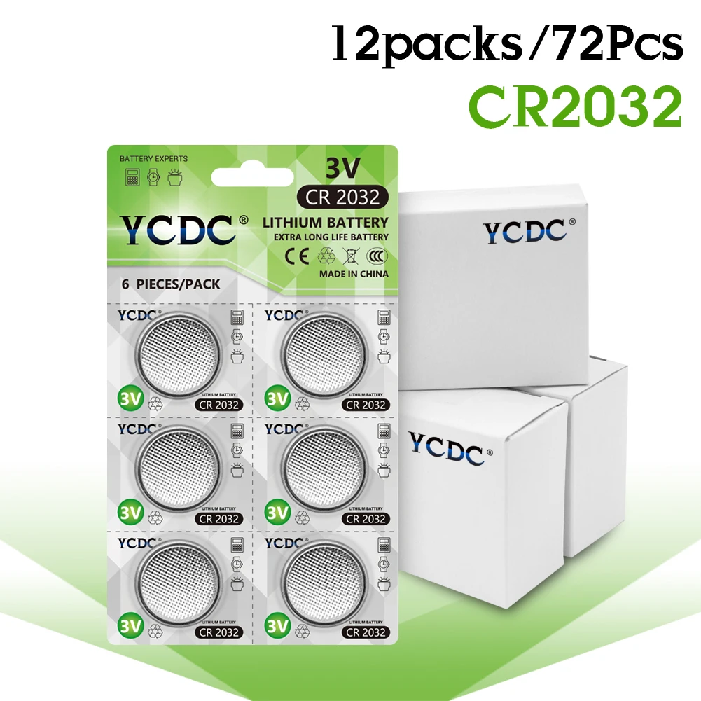 YCDC 36-120 шт. CR2032 аккумулятора кнопочного типа BR2032 DL2032 ECR2032 ячейки литиевая батарея 3V CR2032 для часы электронные игрушки пульт дистанционного управления