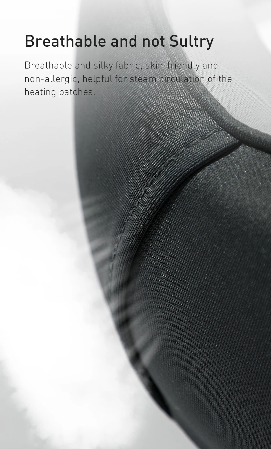 Дышащая и шелковистая ткань, приятная для кожи и не вызывает аллергии, полезна для циркуляции пара нагревательных пластырей