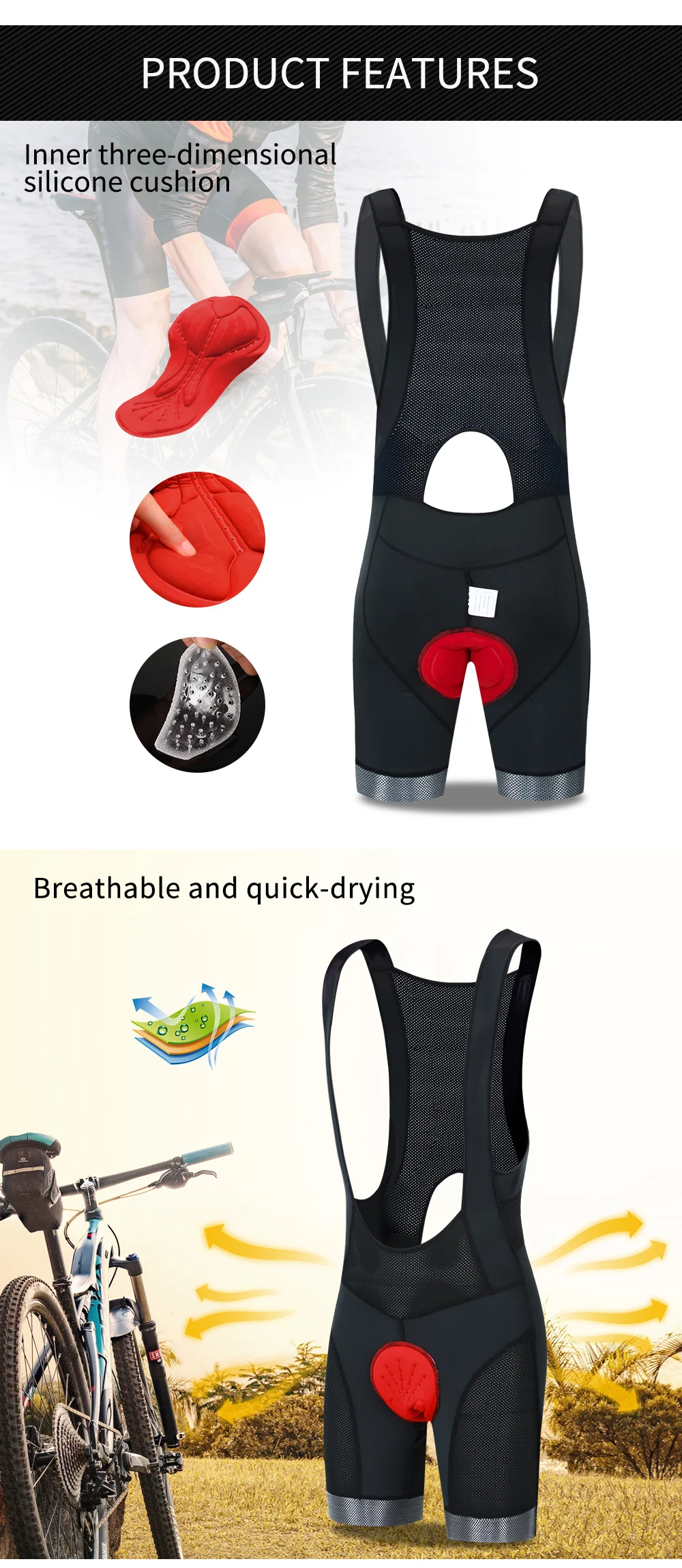 Описание BL153: WOSAWE летний Открытый Велоспорт нагрудник шорты Подходит для бега, велоспорта и многих видов спорта на открытом воздухе Особенности продукта: Изящный пошив Натуральная посадка Быстрая сушка Мягкий и против морщин Эластичный Противоскользящий пояс Легкий и дышащий Дизайн светоотражающего материала с логотипом Внутренняя трехмерная силиконовая подушка Посылка включает в себя: 1 велотренажер Спецификация: Название: велосипедные шорты Цвет: черный Материал: полиэстер, спандекс Размер: M, L, XL, 2XL, 3XL, Вес: (XL) около 245 г/0.54LB Пол: человек Применение: Велоспорт, бег, туризм, альпинизм и другие виды спорта на открытом воздухе