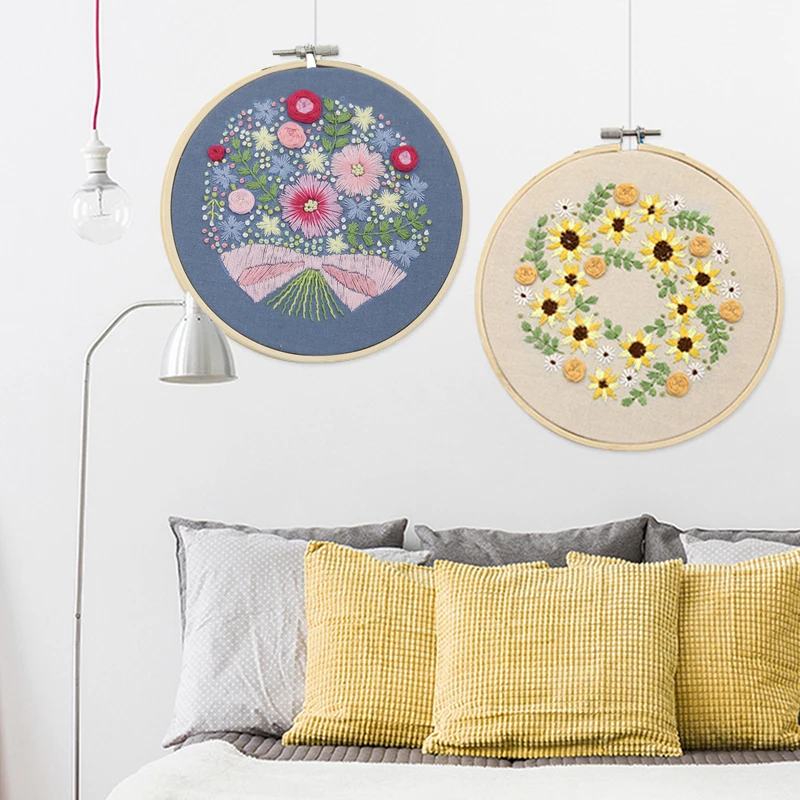 2. Предварительно разработанные цветочные узоры на вышитой ткани и каждая тема имеет цветовое руководство и цветовое руководство, очень дружелюбный для начинающих, которым нравится DIY, легко начать и закончить Красивая вышивка все размерную сетку США самостоятельно.