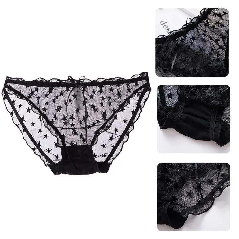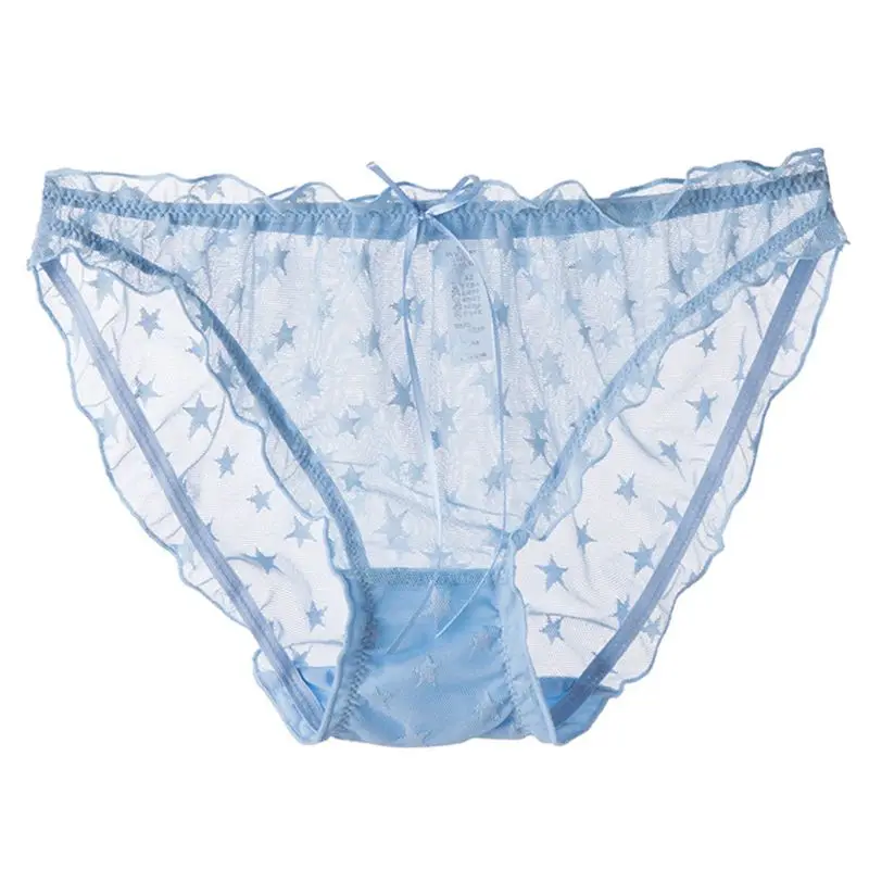 Женские сексуальные прозрачные сетчатые трусики с оборками, милые трусы со звездами и бантом из ленты, нижнее белье