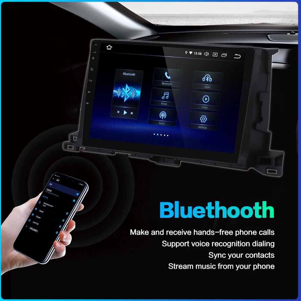 С функцией распознавания голоса и функцией телефонной книги. Вы можете синхронизировать номер телефонной книги с вашего мобильный телефон на этот блок и сделать мобильный телефон без рук удобным и быстрым. Вы можете передавать музыку с вашего телефона через Bluetooth и наслаждаться множеством песен, которые вам нравятся