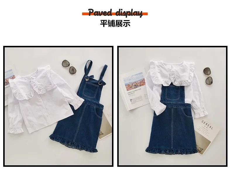 2020 детский комплект одежды для девочек, детская одежда на возраст 6, 8, 12, 13, 14 лет, осенняя Блузка + джинсовый комбинезон, костюм из 2 предметов для девочек-подростков