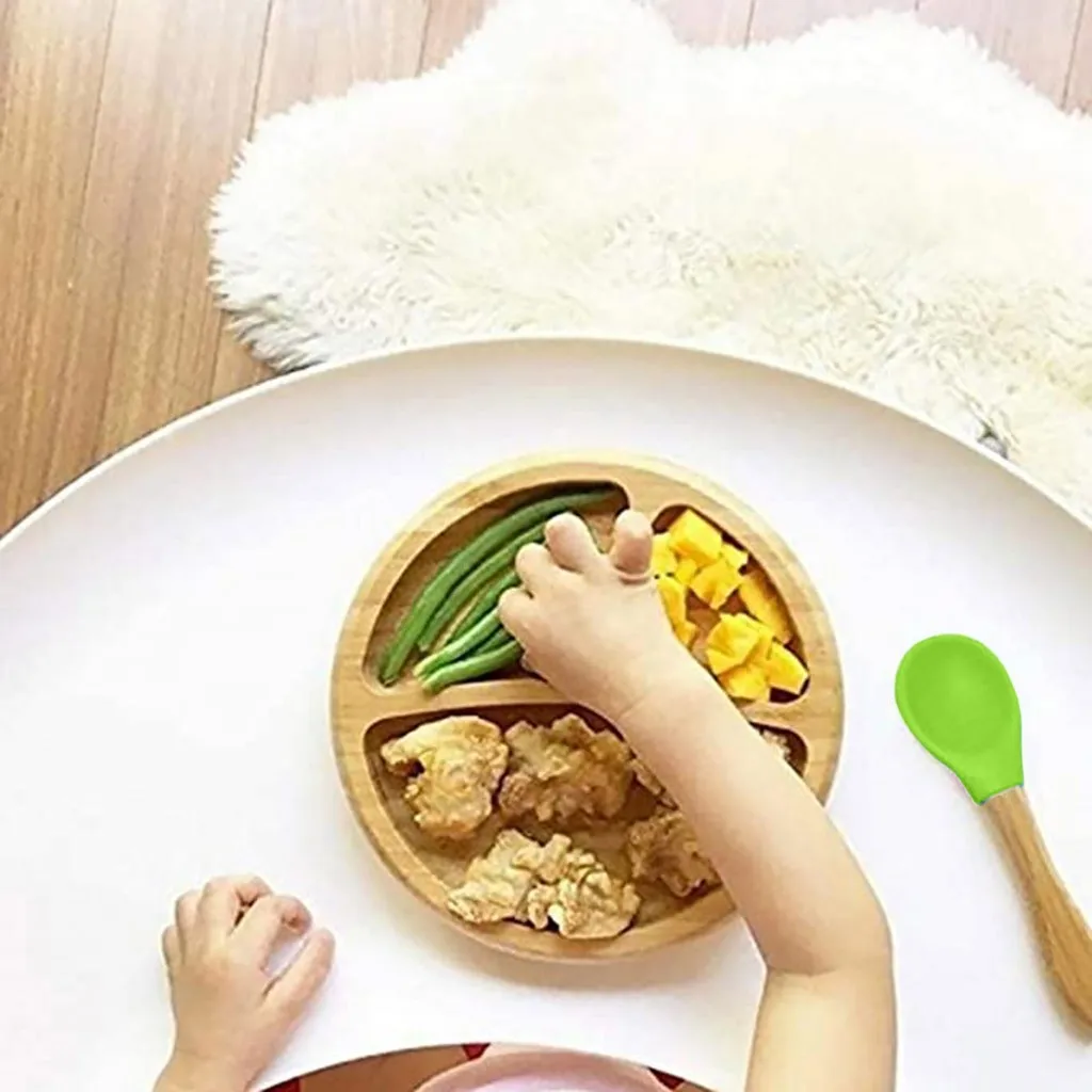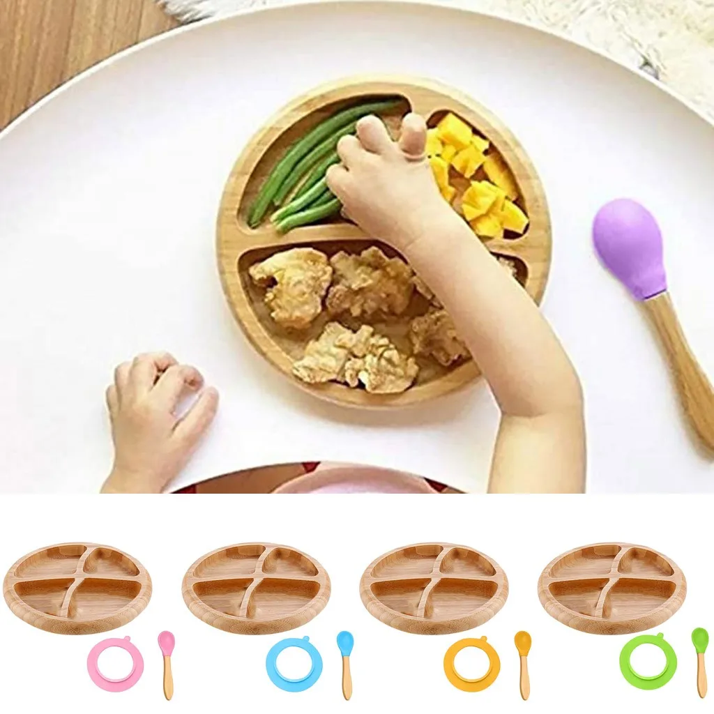Детский бамбуковый круглый пластинчатый силиконовый набор для кормления, ложка на присоске чаша всасывания