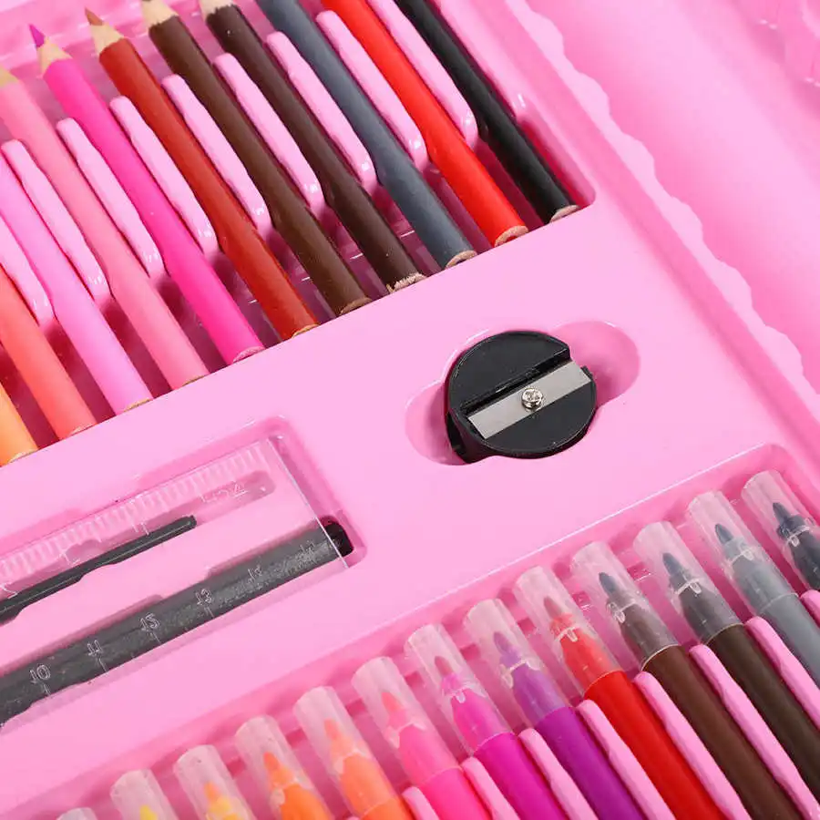 1 х подарочный набор в коробке (коробка с двухсторонней доской для рисования) (Включая цветные ручки x 12 Цветные карандаши x 24 Мелки x 24 Карандаш для масляной живописи x 48 Твердая акварель x 18 Мини цветные карандаши x 24 Линейка x 1 Скрепки для бумаги x 30 Кисть x 1 Губка x 1 Бумага для рисования x 10 Карандаш x 1 Точилка для карандашей x 1 Зажим для краски x 4 Палитра x 1 Ластик x 1 Белый клей x 1 Пластиковый зажим для бумаги x 3)