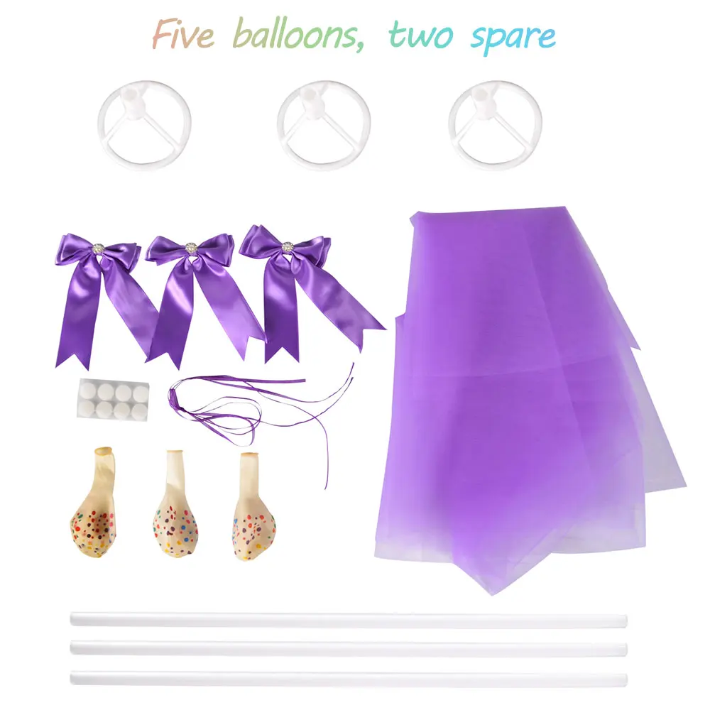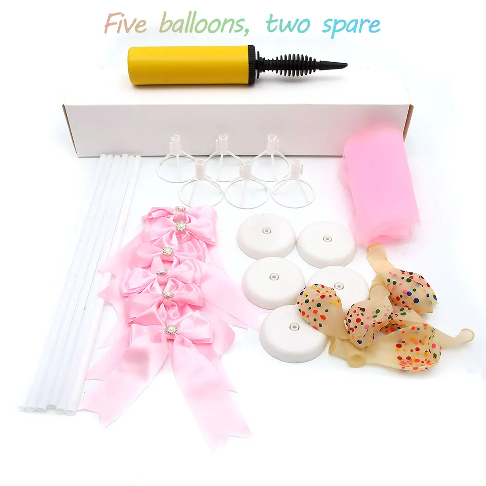 Воздушные шары: 5 (2 резервного копирования) Чистая Пряжа: 3 листа Марля: 3 Бантов: 3 Баллон + основание: по 3 шт. Двусторонний клей: 8 пар