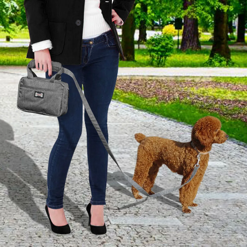 С мягкие удобные ручки С карманом внутри для дозатора poopbag Дополнительная резиновая прокладка с отверстием для скрещивания для легкого захвата poopbag Передний карман на молнии для мобильного телефона С водонепроницаемый нейлоновый материал