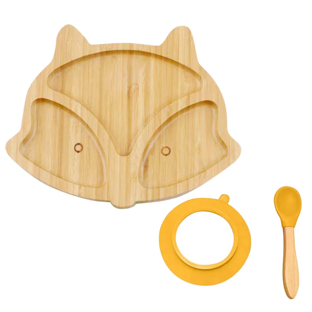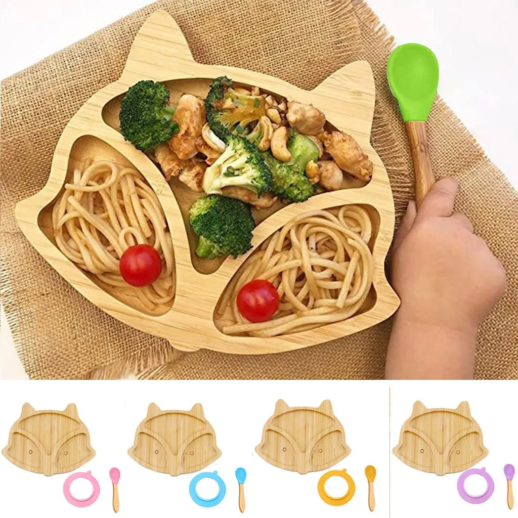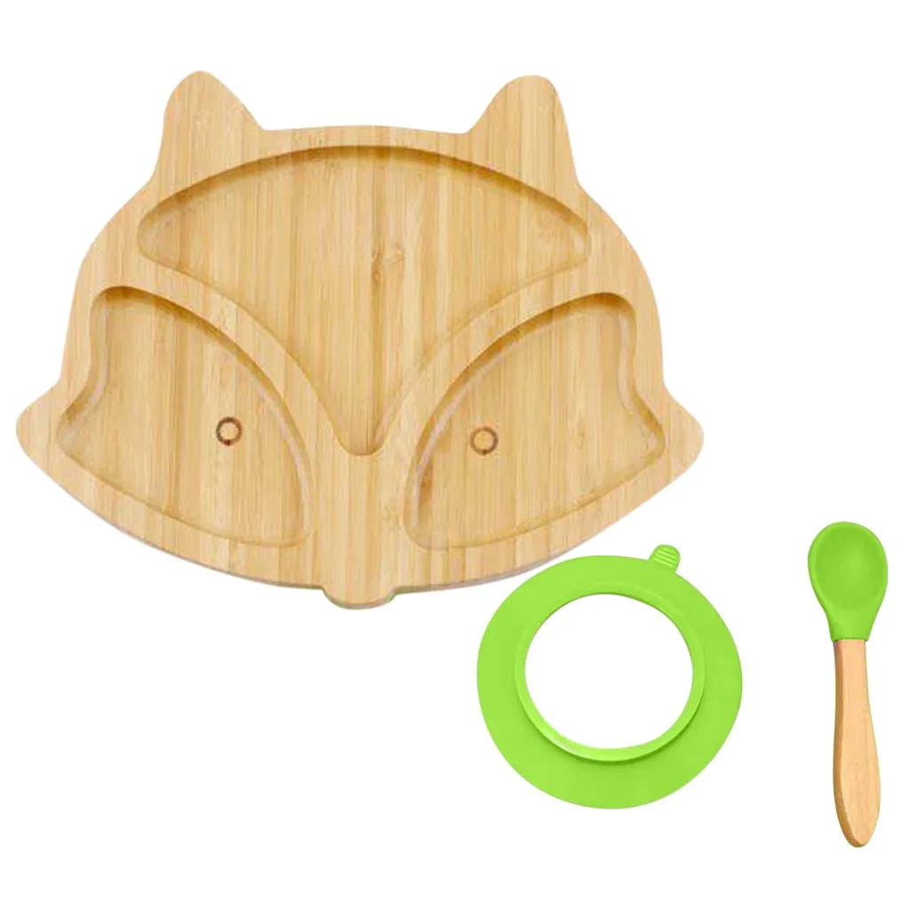 Детская бамбуковая овечья тарелка силиконовая для кормления, набор ложек на присоске чаша всасывания