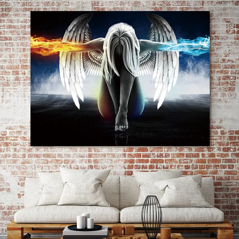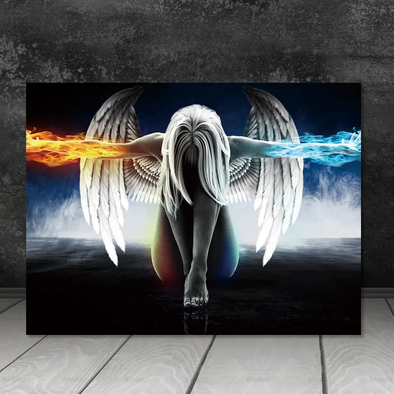 Аниме лед и огонь картины с ангелом на холсте Девушка с плакаты с изображением крыльев и принтами настенные художественные картины для гостиной украшения дома