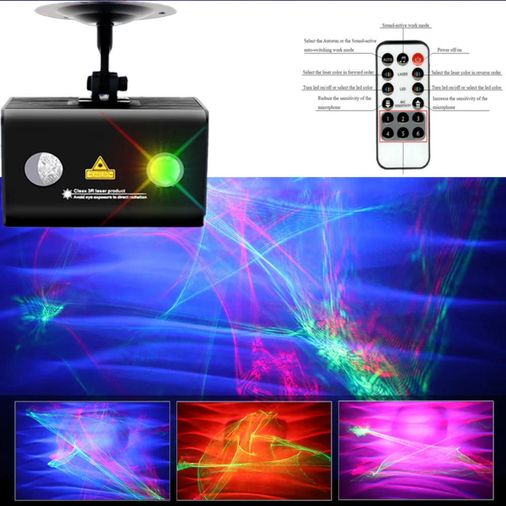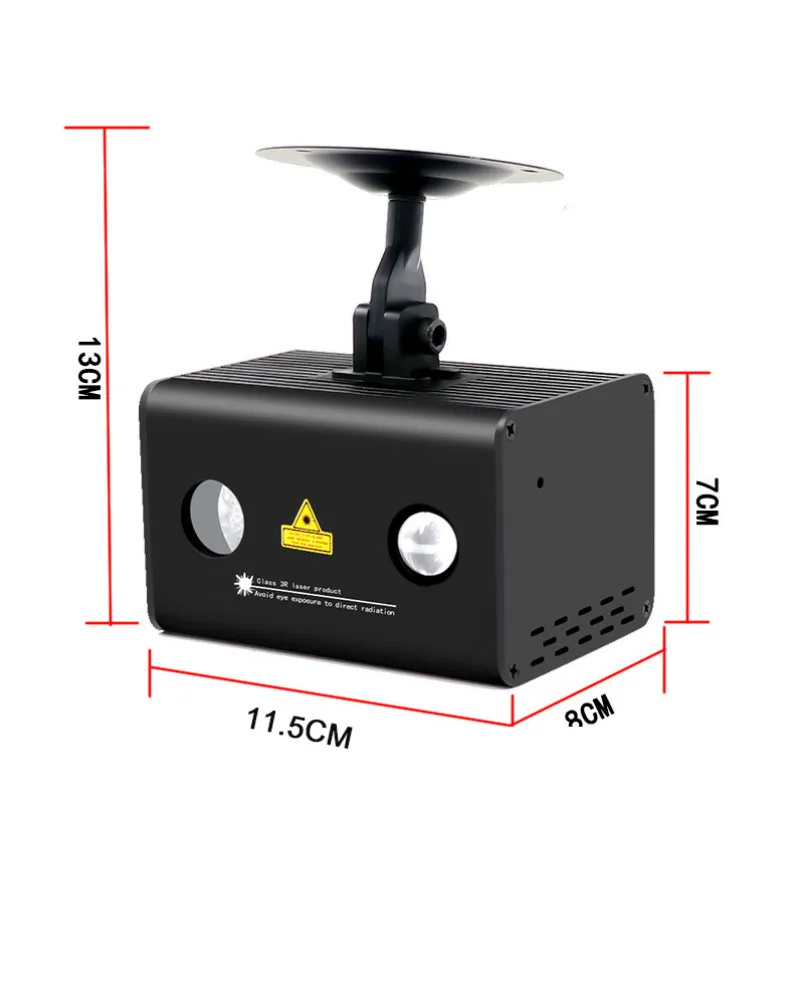 Водная волна светодиодный сценический светильник, лазерный проектор, светильник s RGB, эффект лампы для вечерние шоу клуба, дискотека с контроллером, коммерческий светильник, ing Лазерный светильник источник: 532nm зеленая лазерная, 650nm красный лазер Светодиодный светильник источник: 3 Вт Красный светильник, 3 Вт синий светильник, 3 Вт Зеленый светильник Мощность лазера: Зеленый светильник 50 мВт (регулируемая мощность), Красный светильник 150 мВт Требования к питанию: AC100V ~ 240V, 50Hz ~ 60Hz Источник питания: DC12V / 1.5A Общая потребляемая мощность: 15 Вт (максимум) Использование окружающей среды: 10 ~ 40 ℃ в помещении Демонстрационный режим: (различные режимы можно переключать при помощи кнопки mode на передней панели лазерного светильник) Зеленый светодиодный индикатор показывает режим голоса, красный светодиодный индикатор-автоматический режим 1. Автоматический режим: демонстрация мощности 2. Режим голосового активации: Переключите режим голосового активации на определенный уровень децибел и начните демонстрацию со звуковым ритмом. (Вышеуказанные режимы можно переключать с помощью пульта дистанционного управления или ручного управления) Система охлаждения: интеллектуальная система контроля температуры вентилятора Применимые условия: сценические представления, DJ, Бальные, KTV отдельная комната, бар, вечерние, Свадебные вечерние, домашние украшения, клуб отдыха, ночной клуб, торговый центр, украшение магазина, игровая площадка, праздничные мероприятия и другие особые случаи Стандартная конфигурация: один лазерный светильник; Один адаптер переменного тока; Один пульт дистанционного управления; Одно руководство; Один универсальный кронштейн