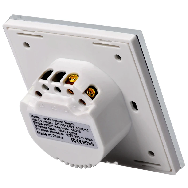 Умный WiFi нажмите плавный диммер. Этот 1-панель регулировки яркости подсветки переключатель поддерживает максимум мощность 800W и может использоваться с большинством приспособления для приглушенного света. Диммер обеспечивает максимальное количество бесступенчатого диапазона затемнения, позволяя пользователям затемнить свет, чтобы сэкономить больше энергии и продлить срок службы лампы. Напряжение: 100-240 В переменного тока. Управление в любое время и в любом месте с помощью мобильного приложения