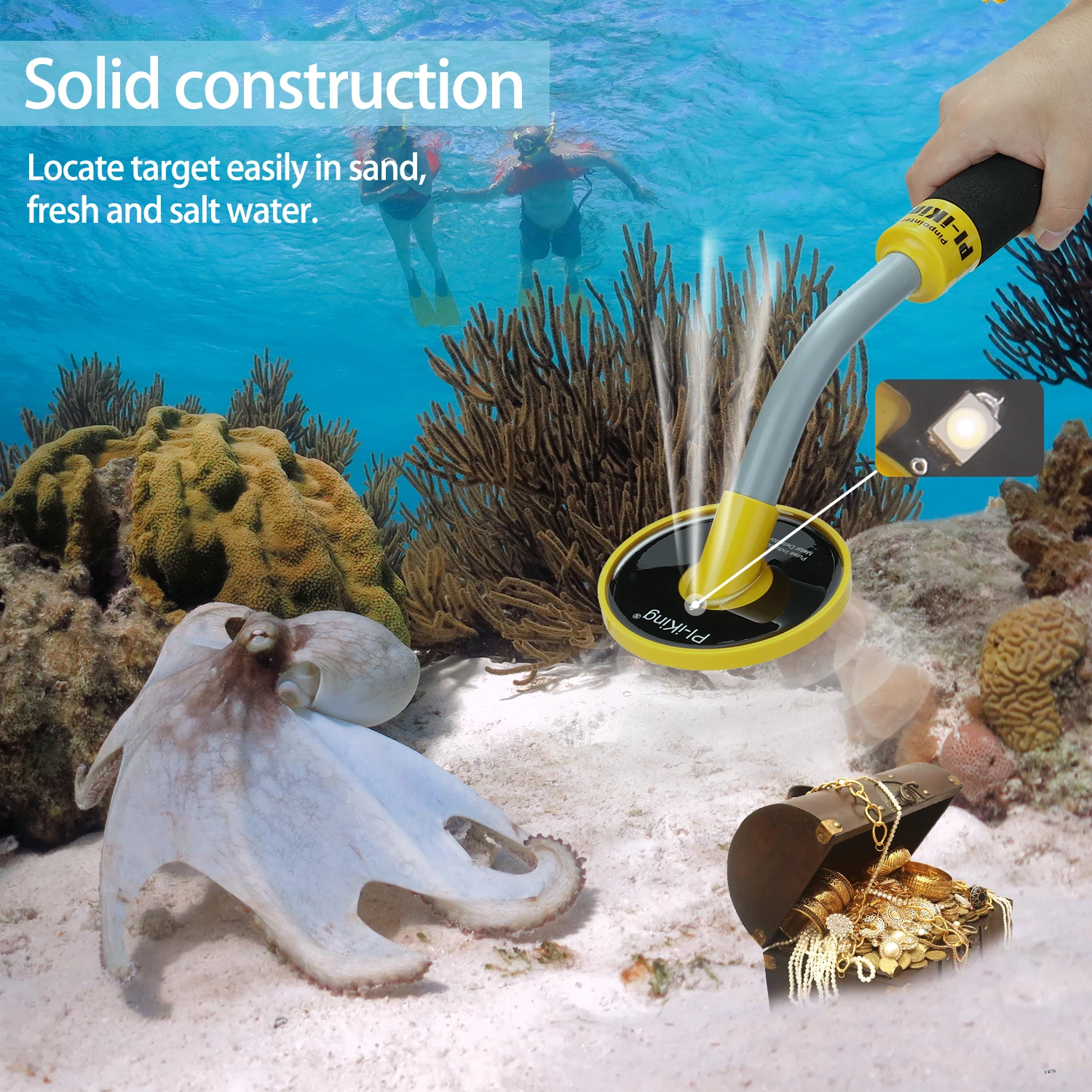 Прочная конструкция-легко найти цель в песке, пресной и соленой воде.