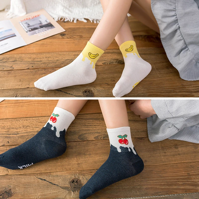 Упаковка: 1 пара лоскутных цветных женских носков с фруктовым узором