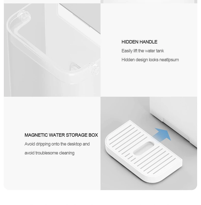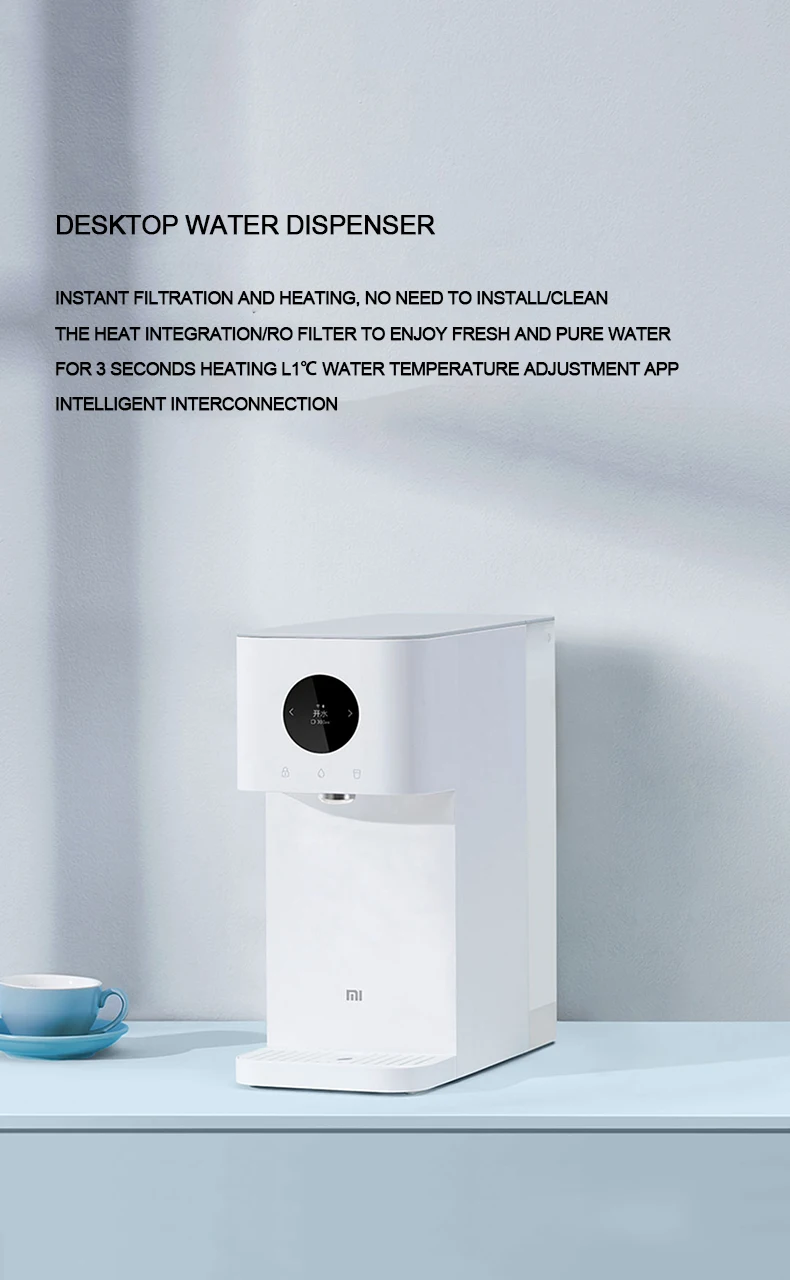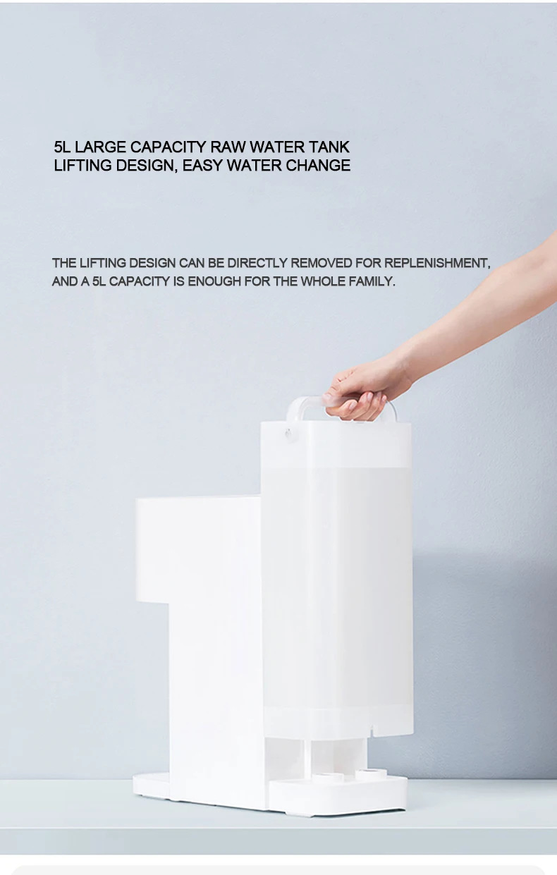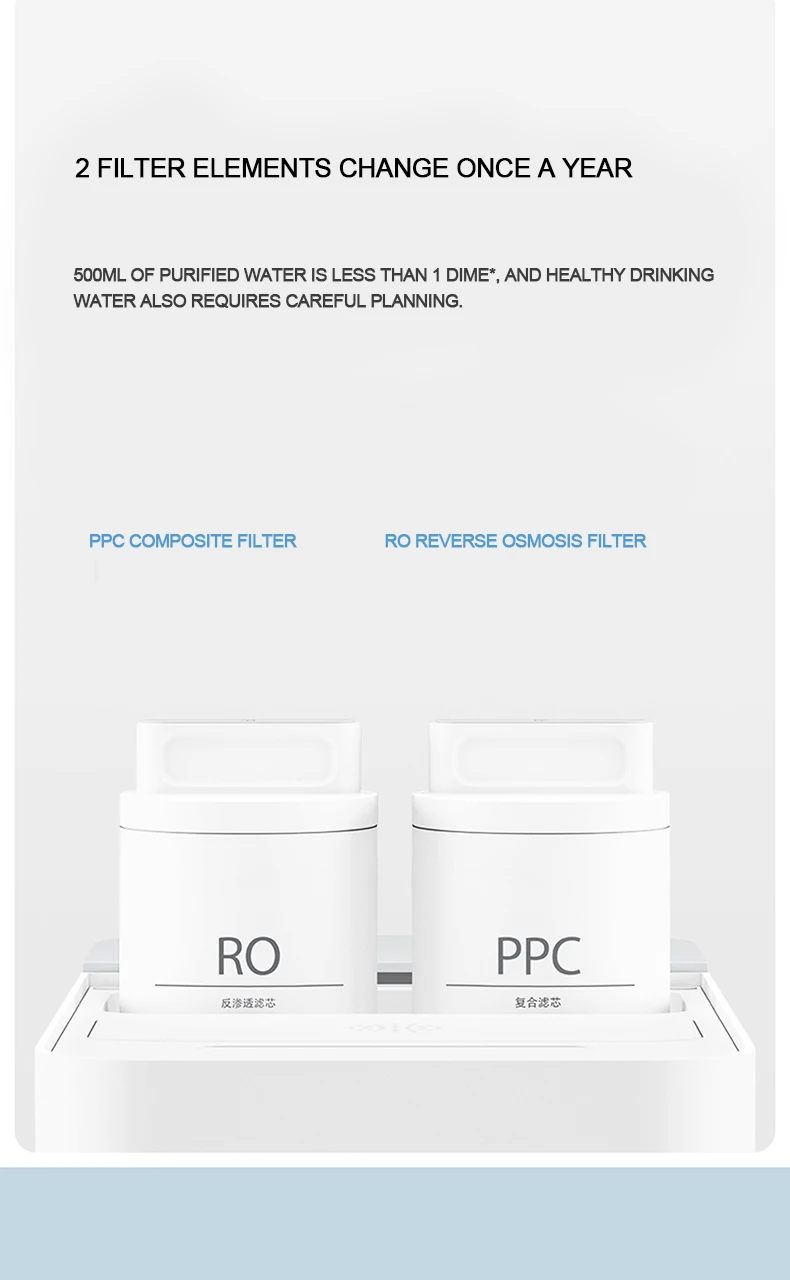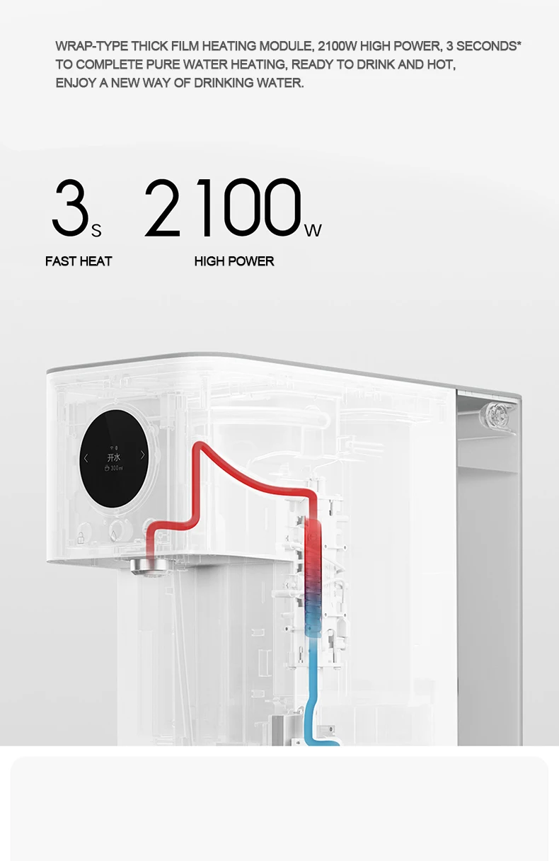 Oled-экран, отображение в режиме реального времени водного режима, температуры воды, объема воды, срока службы фильтрующего элемента, состояния сети, напоминания об изменении воды и другой информации, контроль состояния использования воды в режиме реального времени. На левой и правой сторонах есть сенсорные кнопки для переключения режима выхода воды, с простым взаимодействием и чувствительными отзывы.