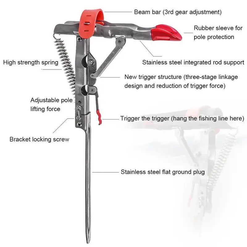 Когда рыба поднимается на крючок, красный триггер будет вытягиваться. Автоматически с пружинами, естественно, вы можете легко получить рыбу.