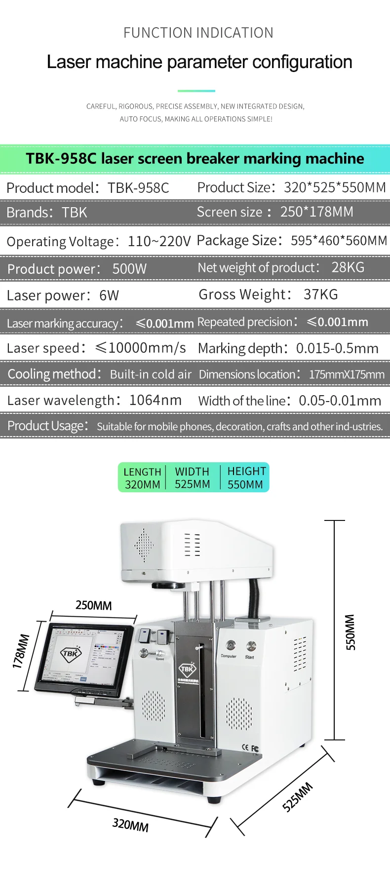 TBK-958C-новая версия в 2020 году. Мини лазерный экран Выключатель маркировочная машина. Стабильный, прочный, низкое энергопотребление, высокая эффективность и меньший размер, вес, предпочтительный за рубежом полностью автоматическая фокусировка, большой ход совершенно новый дизайн ----- Беспроводное управление телефоном многие функции можно контролировать на мобильный телефон, эффективно использовать быстро, легко и удобно.