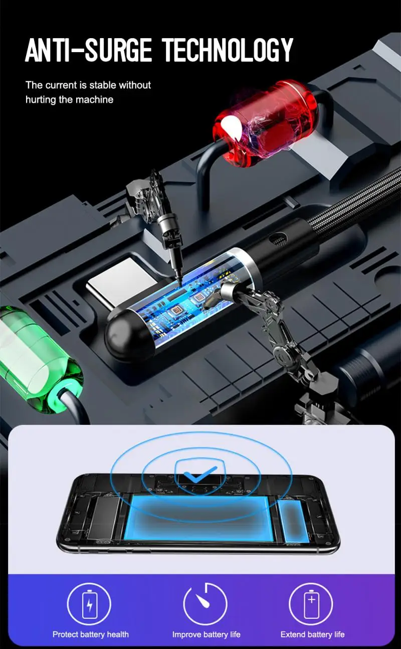 * Интеллектуальная Быстрая зарядка: ток 5A может проходить плавно, и машина не будет повреждена, когда она заполнена в течение 1 часа. Не беспокойтесь о проблеме незрелых поломок провода, таких как недостаточная зарядка и отключение.