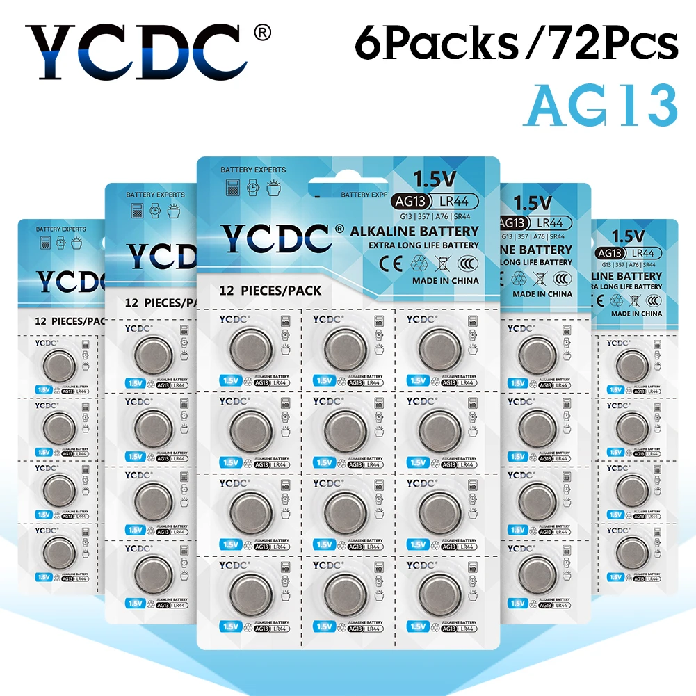 YCDC 48-240 шт. AG13 LR44 357 аккумуляторы таблеточного типа R44 A76 SR1154 LR1154 ячейки щелочной Батарея 1,5 V G13 для мобильного часо-игрушки пульт дистанционного управления
