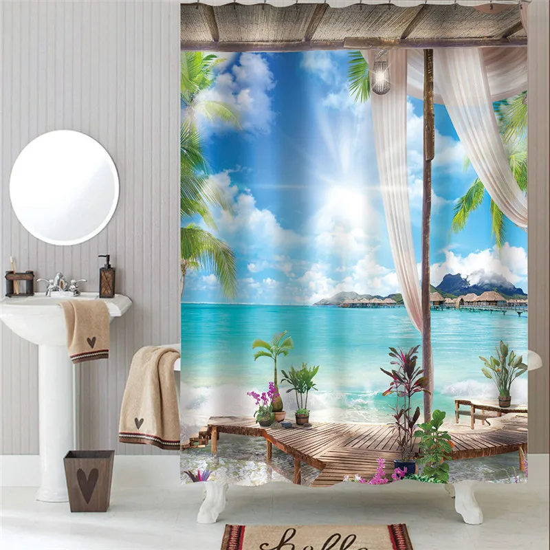 Название товара: занавеска для душа с цифровой печатью Размер: 150 см Ш X 180 см в (приблизительно 59x71 дюйм) с 12 отверстиями 180 см Ш X 180 см в (приблизительно 71x71 дюйм) с 12 отверстиями Материал: водонепроницаемая полиэфирная ткань Цвет: как на изображении Вес изделия: 400 г Особенности: водонепроницаемый, мягкий и прочный Использование: украшение дома и отеля Этот продукт может использоваться как занавеска для ванной, занавеска для ванной, занавеска для спальни, настенный фон для гостиной, украшение садовой стены и так далее. Посылка входит: 1 шт. занавеска для душа + 12 пластиковых крючков Примечание 1. Из-за ручного кроя и ручного управления шитьем, размер с большим или меньшим 2% разрешен. 2. Между изображением и реальным товаром есть разница в освещении, вызванная ярсветильник