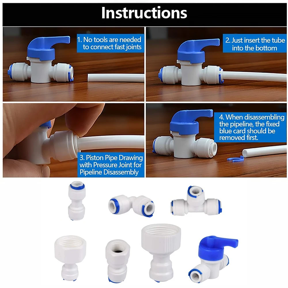 -Посылка: 15 метров 1/4 "водяной шланг, 1 * прямой 1/4" нажимной разъем, 1 * локоть 1/4 "пуш-ап, 1*1/4" "Т-образный элемент, 1 * Встроенный 1/4" "запорный клапан, 1*1/4" "соединитель, кран, 1*1/2" "соединитель, кран, 2*3/4" соединитель крана, 1 * резак трубы.