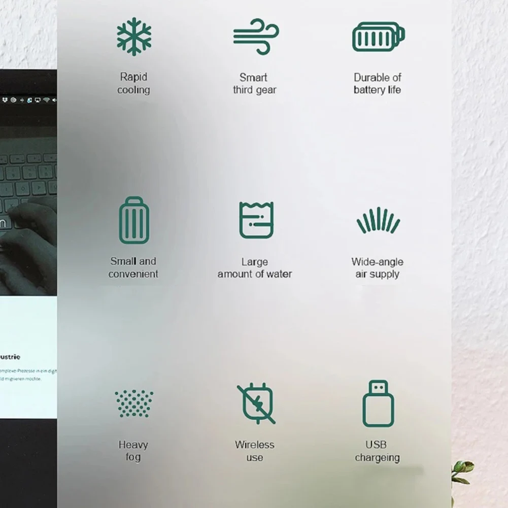 2. Длительное время работы: просто наполните водой, подключите к любой стандартной стене и наслаждайтесь! Работает до 5-11 часов на заполнение! Это испарительный охладитель воздуха, который позволяет вам создать свой собственный личный климат!