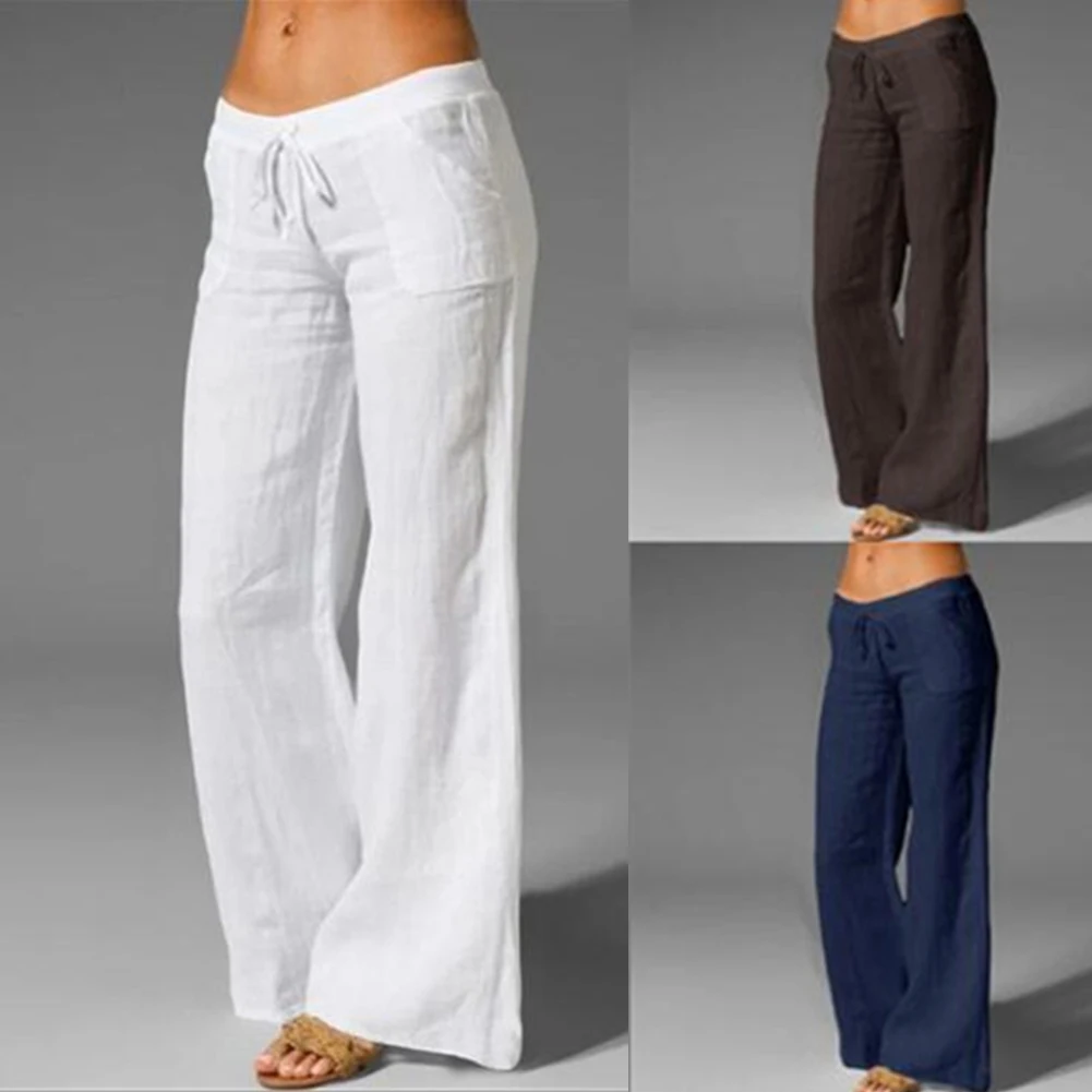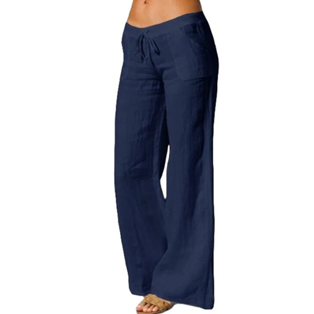 Женские одноцветные эластичные длинные штаны с карманами и завязками, брюки для йоги