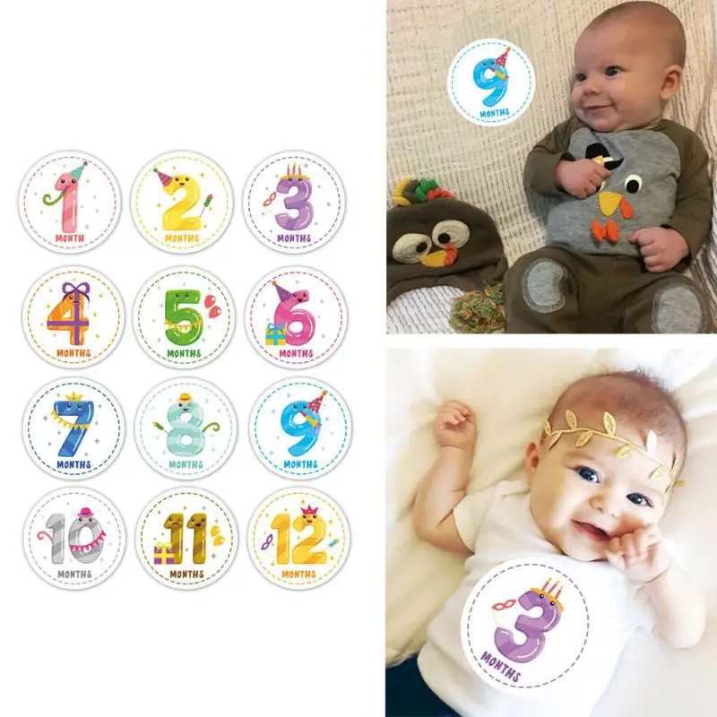 12 шт Детские ежемесячные наклейки для новорожденных, наклейки для живота, подарок для душа, скрапбук, фото, Keepsake