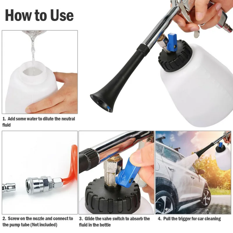 Ideal Car Cleaning Tools: Advanced cleaning sprayer designed with unique cyclonic cleaning, faster and easier to clean your car on all details which is hard to clean by hand. Horn head with brushes that can clean and air dry in seconds. It is easier and faster than small detailing brushes or swabs.
