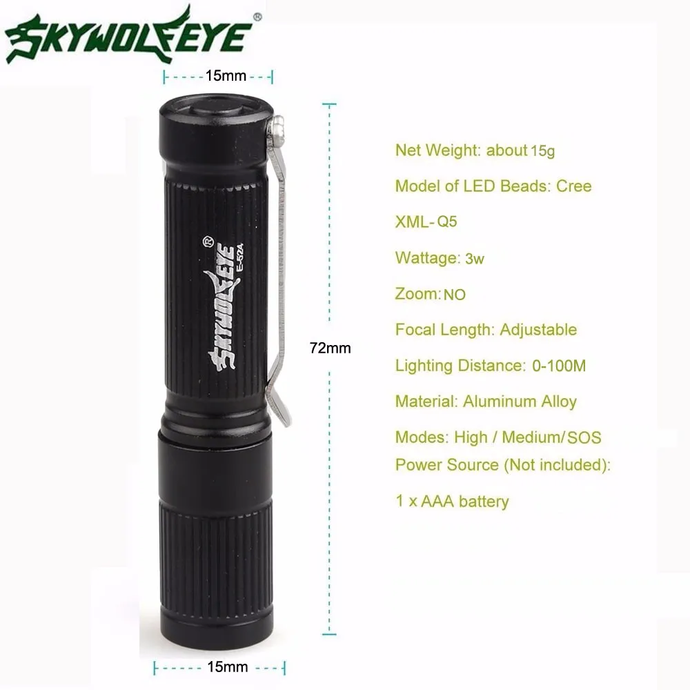 Our Sky Wolf Eye Cree XM-L Q5 3 лм 3 режима Водонепроницаемый светодиодный фонарик Lotus Head черный костюм является экономически эффективным отключением. Работает от аккумулятора 18650, она стабильна для длительной работы. Ее самой выдающейся особенностью должна быть переменная фокусировка, поэтому вы можете настроить его для удовлетворения ваших потребностей. Также с ремешком удобно носить с собой. Больше всего, этот светильник-вспышка подходит для домашнего использования, активного отдыха, пеших прогулок, ночной рыбалки, кемпинга, парусного спорта и т. д. Не упустите шанс, если вы хотите купить высокую производительность и яркий светильник вспышки светильник!