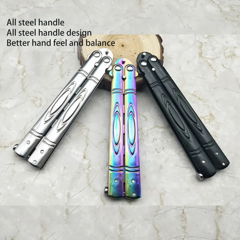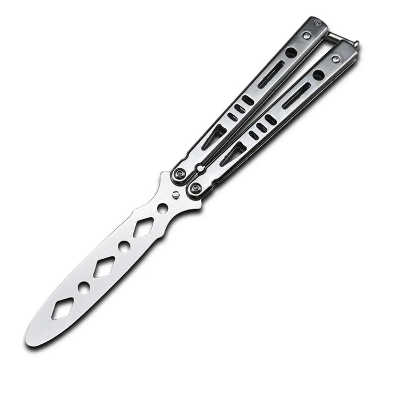 Характеристики: нож из нержавеющей стали, тренировочный нож с бабочками, нож для соревнований на открытом воздухе, тупой инструмент без лезвия