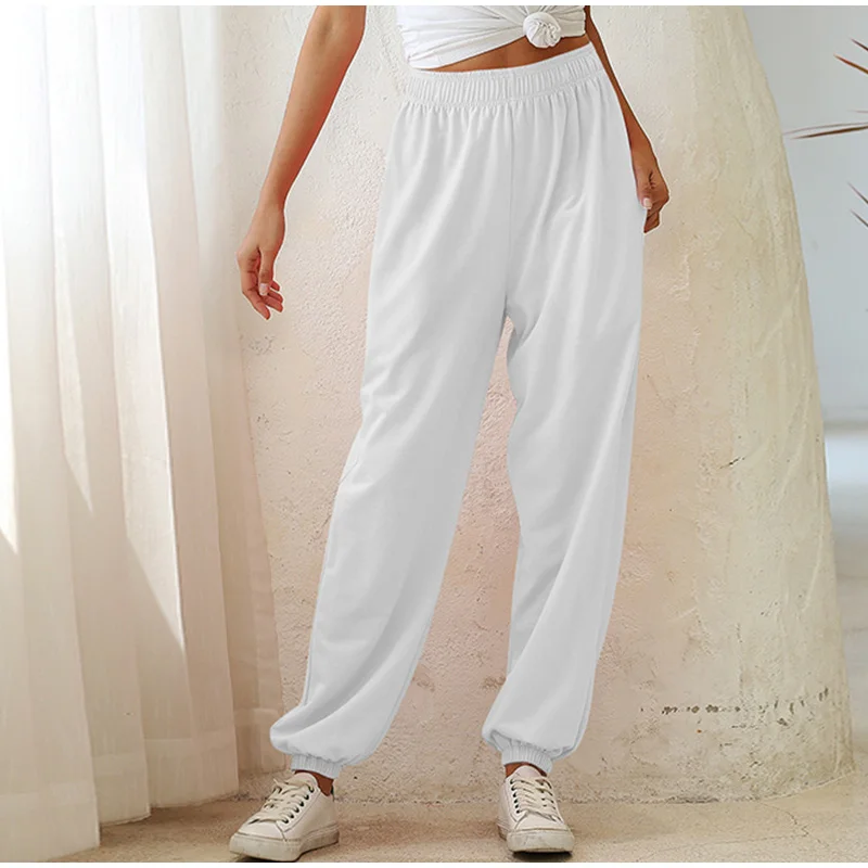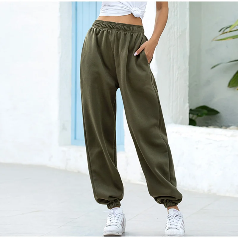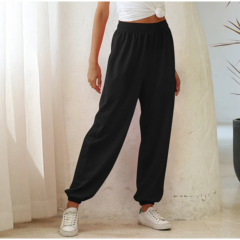 Осенние женские брюки с эластичным поясом, свободные однотонные женские брюки, новинка 2021, повседневные уличные домашние спортивные женские брюки