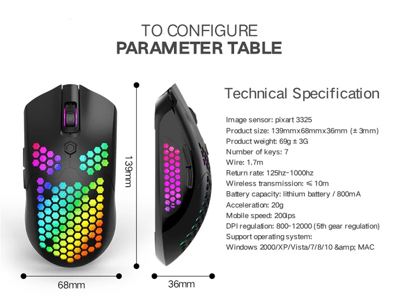 Новая беспроводная игровая мышь с двойным подключением 12000DPI с сенсором изображения PixArt 3325 поддержка рабочего стола/ноутбука Поддержка windows 10/8/7