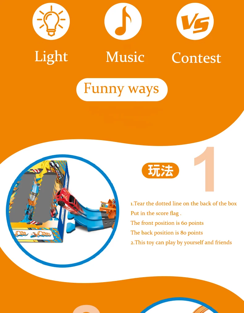 1. Подключение начальной точки И подиумная полоса 2. Подключите runways 3. Подключение подиума и дайвинга Платформа 4. Подключите подиумную полосу И платформа для дайвинга 5. Подключите другую сторону подиума С платформой для дайвинга 6. Подключите листовую пластину 7. Нажмите кнопку shoot off на Отправная точка 8. Застревает в соответствующей сетке 9. Поместите автомобиль в это место И затем нажмите кнопку shoot off