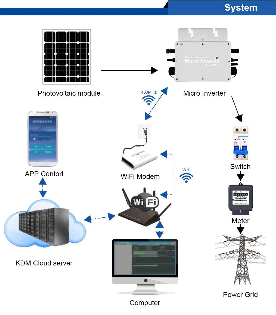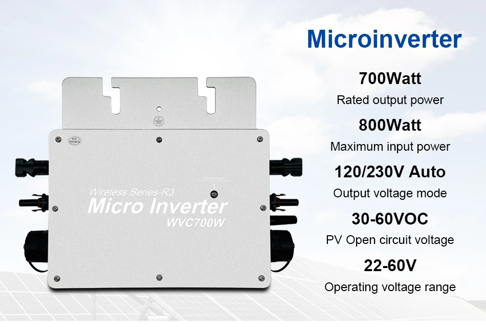 Микроинвертор WVC700 с использованием водонепроницаемого оптимизированного дизайна IP65, может эффективно предотвращать эрозию дождевой воды на поверхности, встроенная высокопроизводительная функция отслеживания максимальной мощности (MPPT), лучше отслеживать изменения солнечной яркости и контролировать различную выходную мощность, эффективно улавливать и собирать солнечный свет. Передача электрической энергии переменного тока с использованием технологии обратной передачи, является одной из наших запатентованных технологий, выходная мощность инвертора может обеспечить приоритетное использование нагрузки, дополнительное электричество в сетку, эффективное использование инвертора к излучаемой мощности, скорость передачи электроэнергии до 99%.