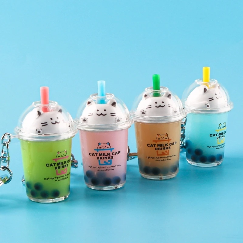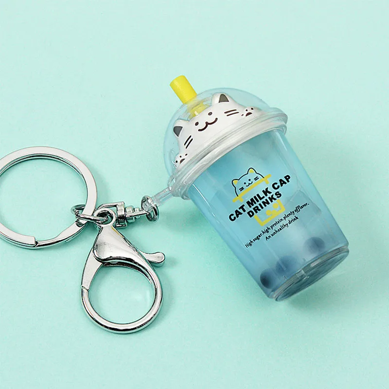 Модный новый брелок с мультяшным котом, автомобильный брелок, мини молочный чай, чашка, жидкий кристалл, зыбучий песок, блестящий брелок, сумка, подвеска для мужчин и женщинОписание товара