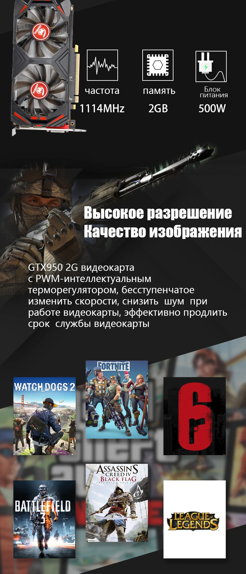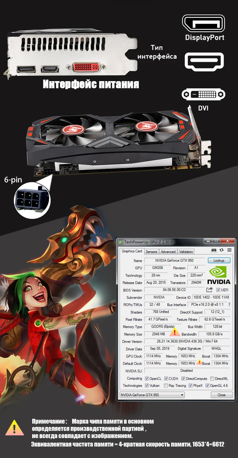 • 100% оригинальный чипсет GTX 950