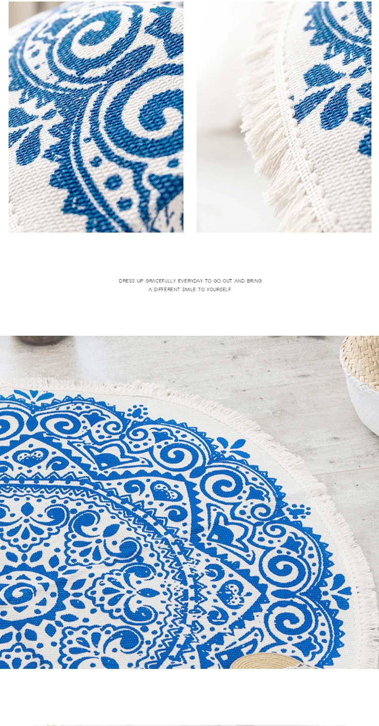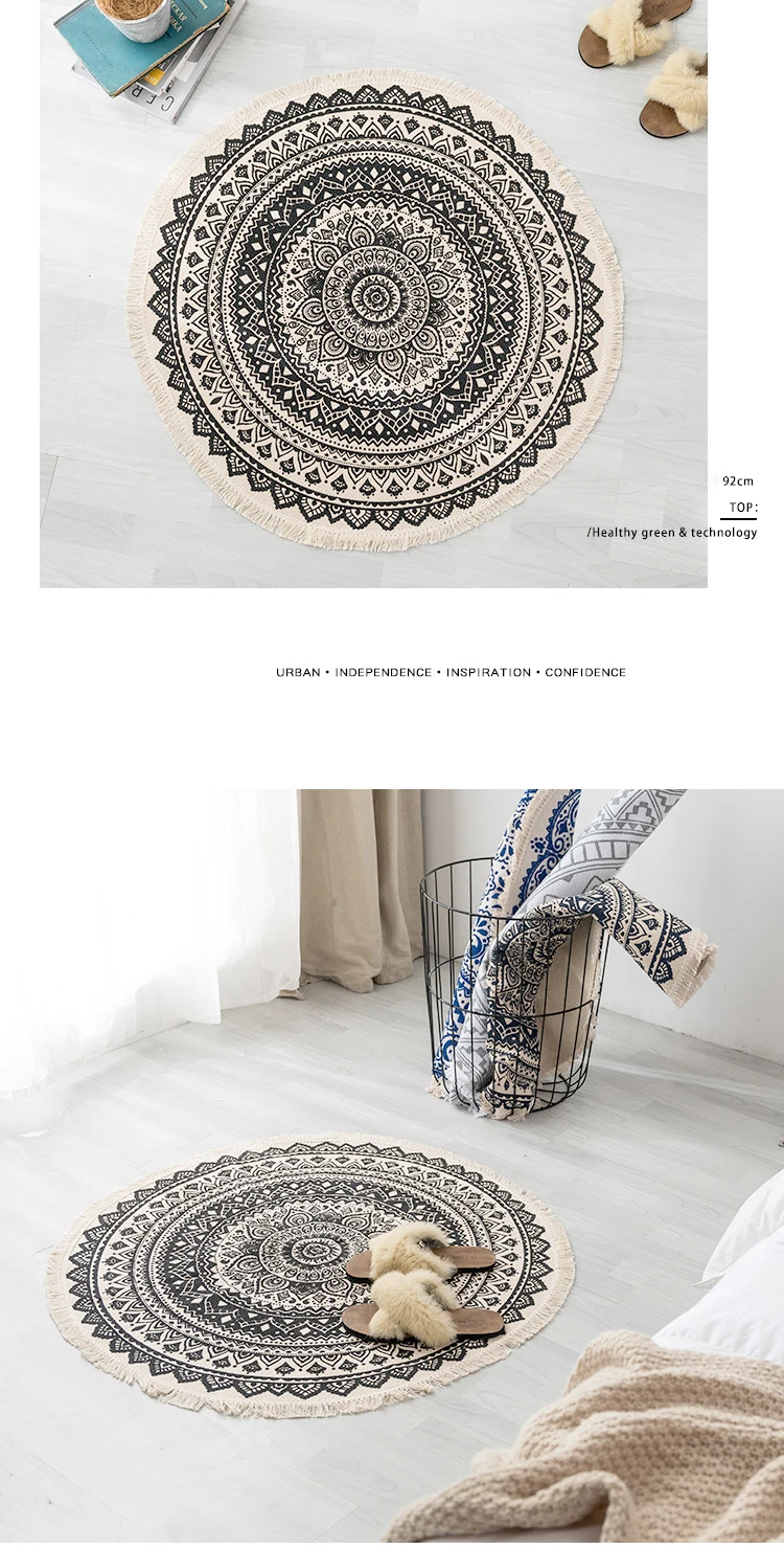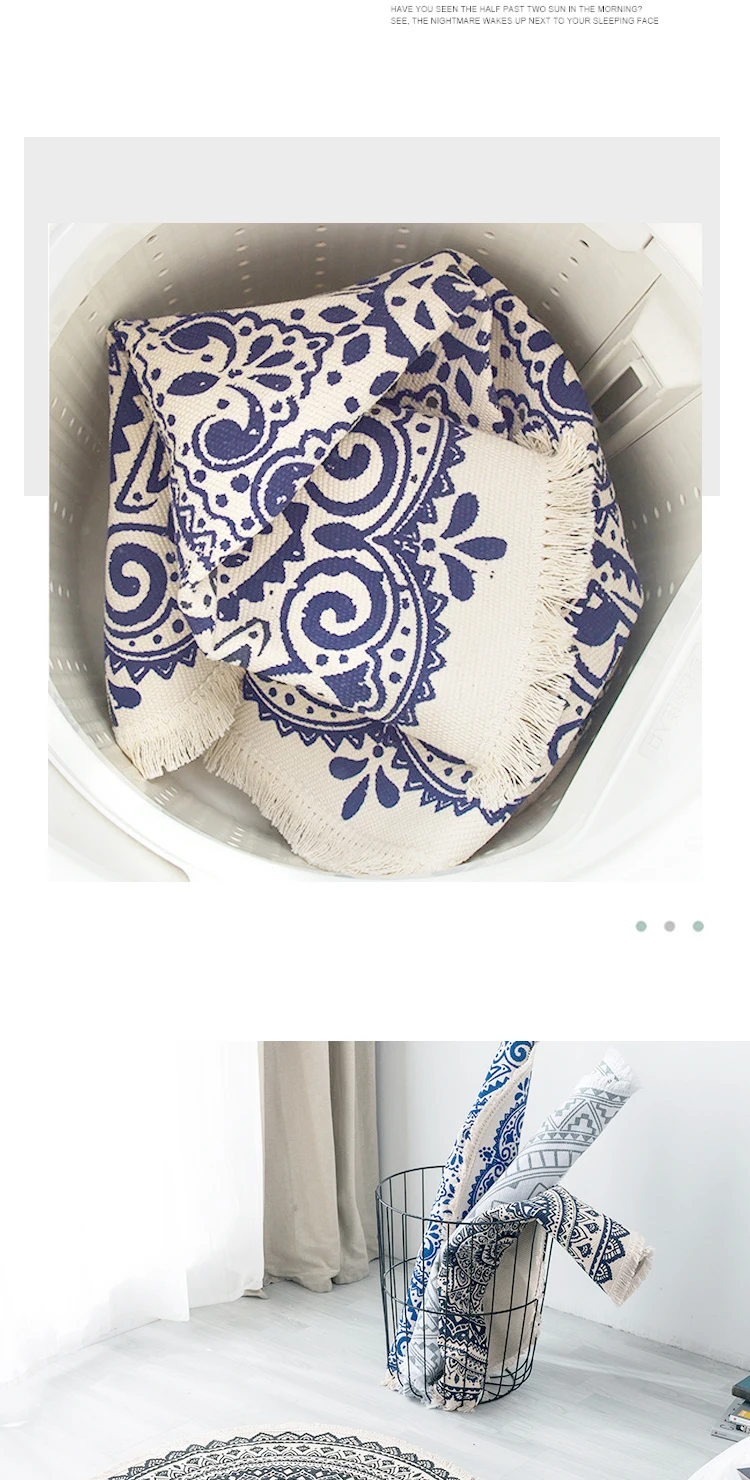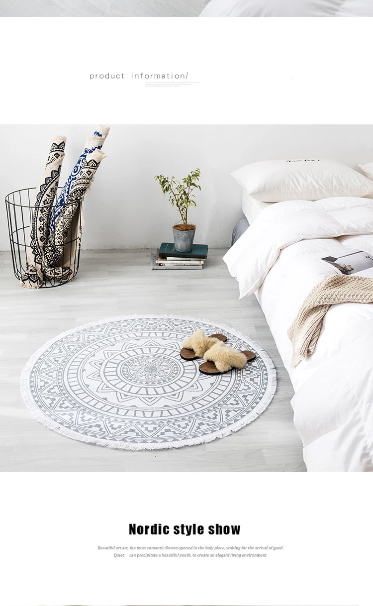 Технические характеристики: Название: хлопковый ковер в богемном стиле Размеры: Диаметр 90 см, 120 см, 150 см Характеристики: натуральный материал, дышащий, мягкий. Материал: хлопковый Детский свитер Цвет: как на картинке Ковер может иметь морщины, потому что он продается в сложенном виде, но морщины исчезнут после использования. Посылка включает в себя: 1x ковер Совет: ручное измерение будет 3 см отклонение, это нормальный диапазон.