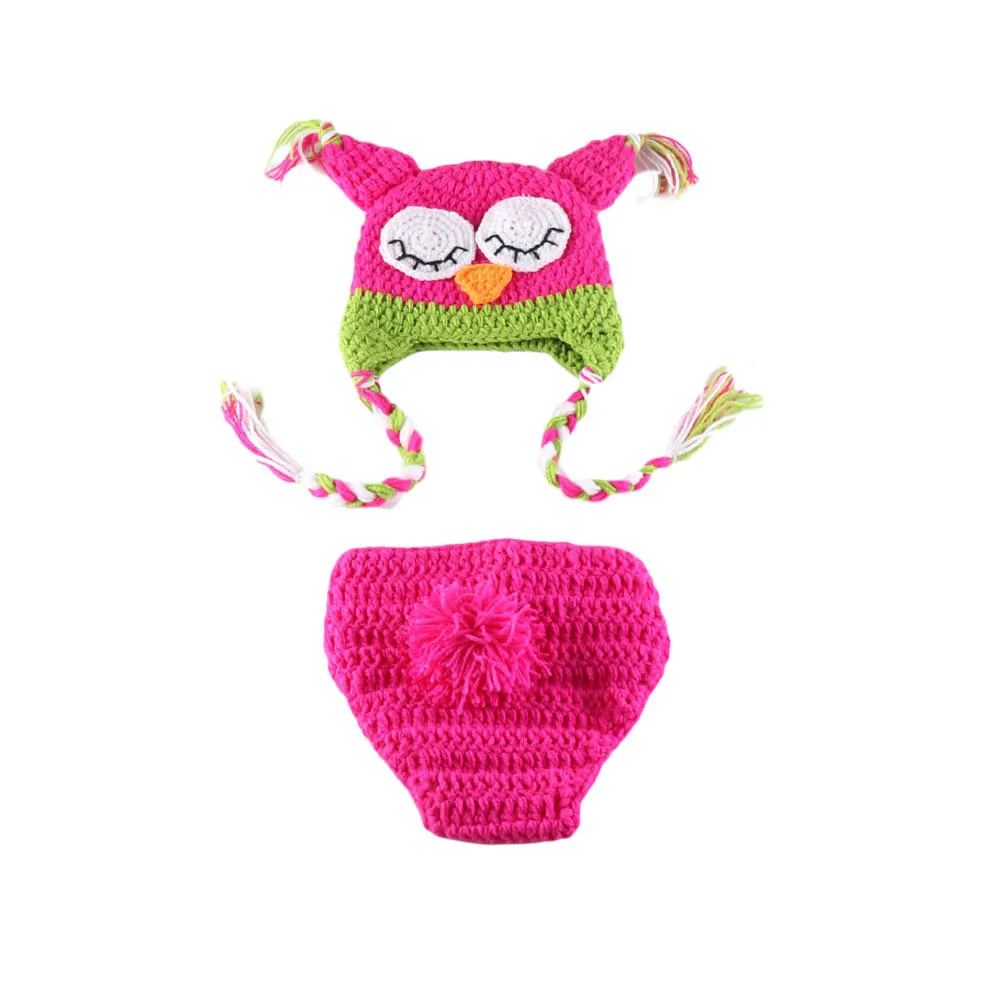 Яркий милый детский костюм с изображением совы, ручной вязки, 100 дней, детская одежда для фотосъемки, шерстяной Трикотажный костюм для фотосъемки