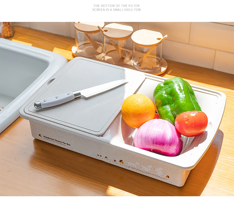 ONEUP многофункциональная дренажная и разделочная доска, не-плесневая пластиковая корзина для слива, кухонный фильтр воды и режущий инструмент