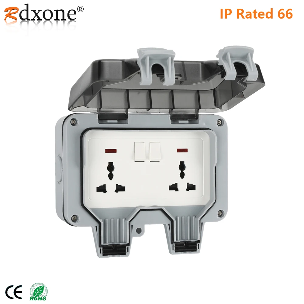 Outdoor Sockets Waterproof Double Socket, Wall Electrical Outlets, IP66 Switched Socket Covers,13A Outdoor Wall Weatherproof Plug Socket Box