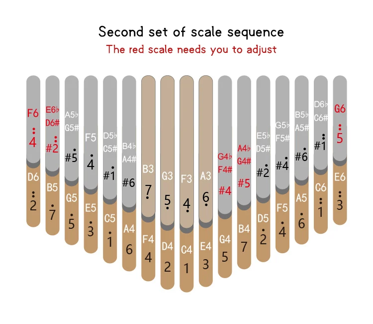 3. Обратите внимание, что из-за вибрации, вызванной транспортировкой, некоторые ключи могли быть перемещены, что привело к неправильной настройке зубцов. Не беспокойтесь, если это чехол, вы можете обратиться к своей инструкции, которая входит посылка вки и проверить настройку сначала перед нами, после настройки прикрепить запасные Стикеры для заметок (ссылка на заказ: //kalimba.aliexpress.com)